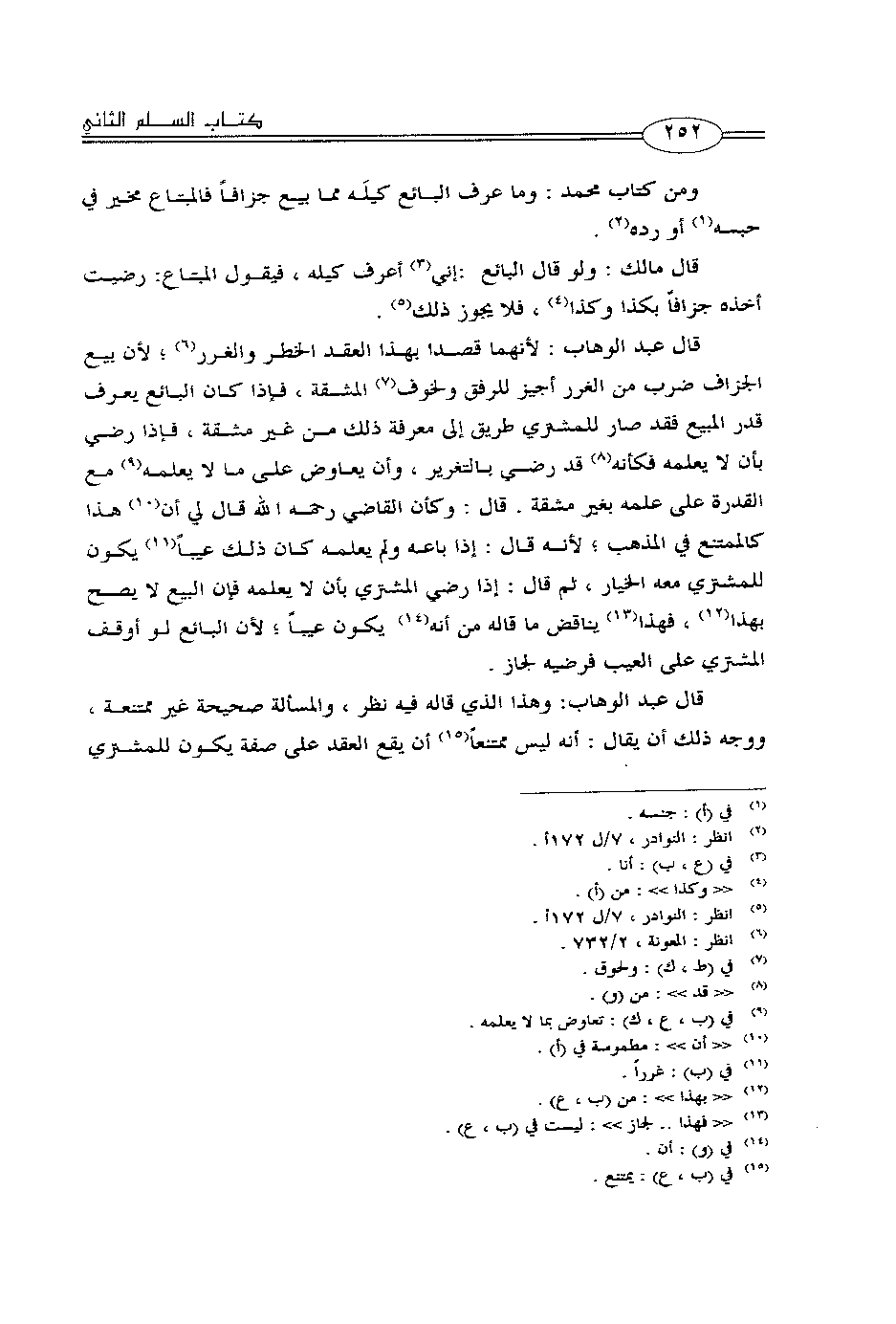 قال عبد الوهاب: وهذا الذي قاله فيه نظر، والمسألة صحيحة غير ممتنعو، ووجه ذلك أن يقال: أنه ليس ممتنعاً أن يقع العقد على صفة يكون للمشتري