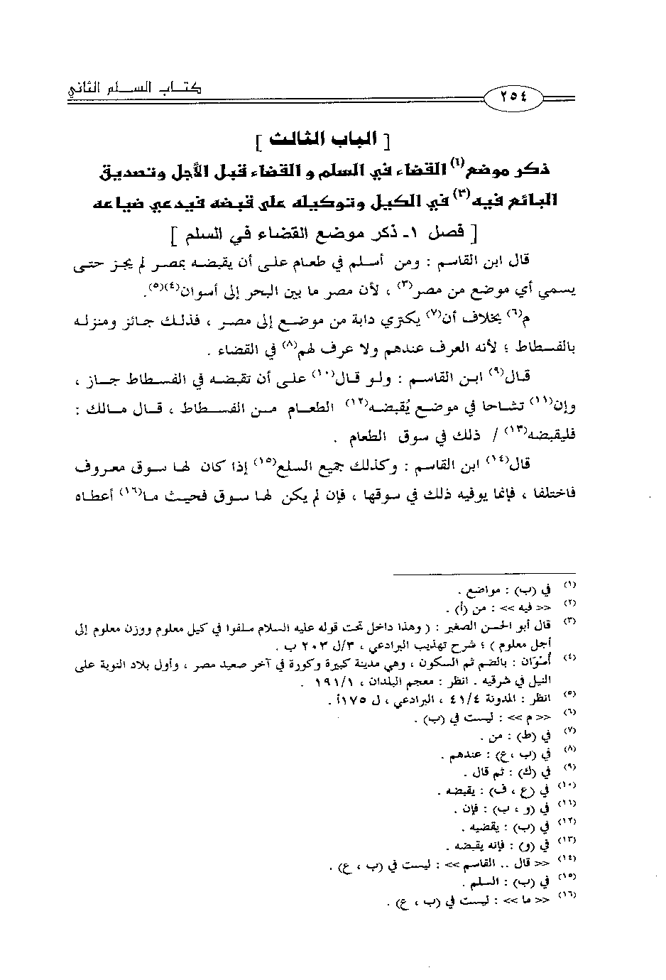 ذكر موضع القضاء في السلم والقضاء قبل الأجل وتصديق