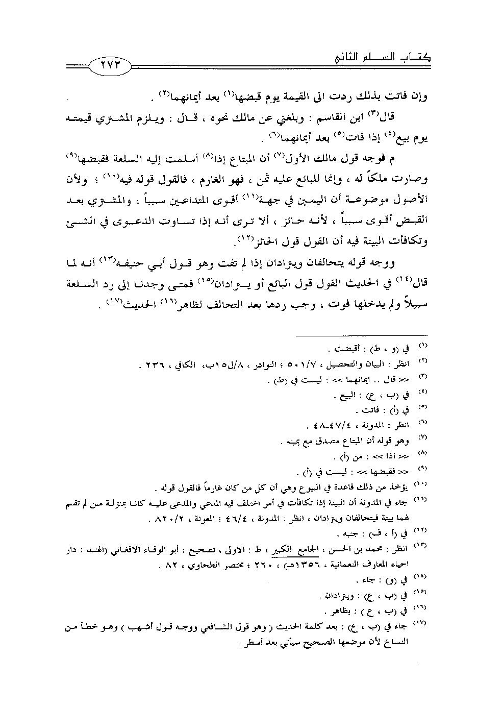 ووجه قوله يتحالفان ويترادان إذا لم تفت وهو قول أبي حنيفة أنه لما قال في الحديث القول قول البائع أو يترادان فمتى وجدنا إلى رد السلعة سبيلاً ولم يدخلها فوت، وجب ردها بعد التحالف لظاهر الحديث.