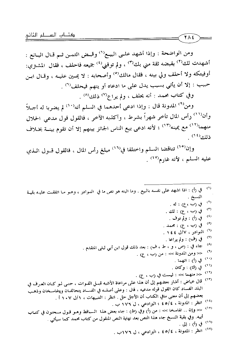 ومن الواضحة: وإذا أشهد على البيع وقبض الثمن ثم قال البائع: أشهدت لك بقبضه ثقة مني بك، ولم توفني جميعه فاحلف، فقال المشتري: أوفيتكه ولا أحلف ولي بينه، فقال مالك وأصحابه: لا يمين عليه، وقال ابن حبيب: إلا أن يأتي بسبب يدل على ما ادعاه أو يتهم فيحلف.