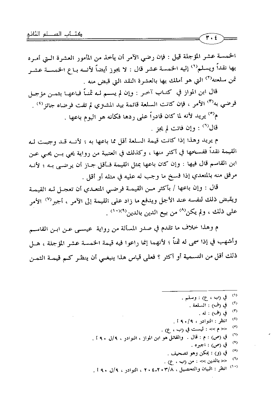 م وهذا خلاف ما تقدم في صدر المسألة من رواية عيسى عن ابن القاسم وأشهب في إذا سمى له ثمناً، لأنهما إنما راعوا فيه قيمة الخمسة عشر المؤجلة، هل ذلك أقل من التسمية أو أكثر؟ فعلى قياس هذا ينبغي أن ينظر كم قيمة الثمن