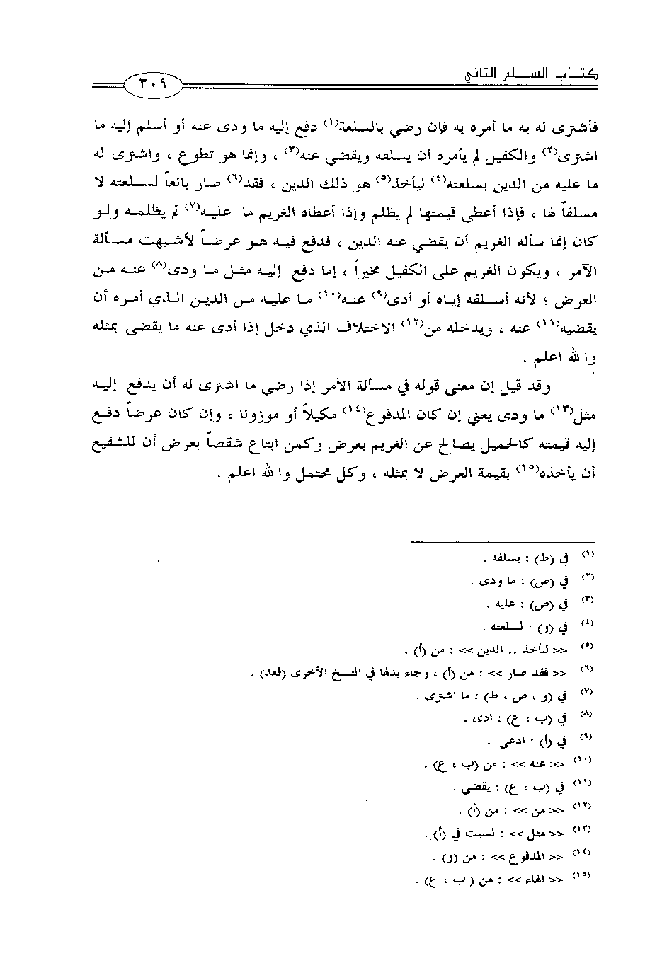 وقد قيل إن معنى قوله في مسألة الآمر إذا رضي ما اشترى له أن يدفع إليه مثل ما ودى يعني إن كان المدفوع مكيلاً أو موزوناً، وإن كان عرضاً دفع إليه قيمته كالحميل يصالح عن الغريم بعرض وكمن ابتاع شقصاً بعرض أن للشفيع أن يأخذه بقيمة العرض لا بمثله، وكل محتمل والله أعلم.