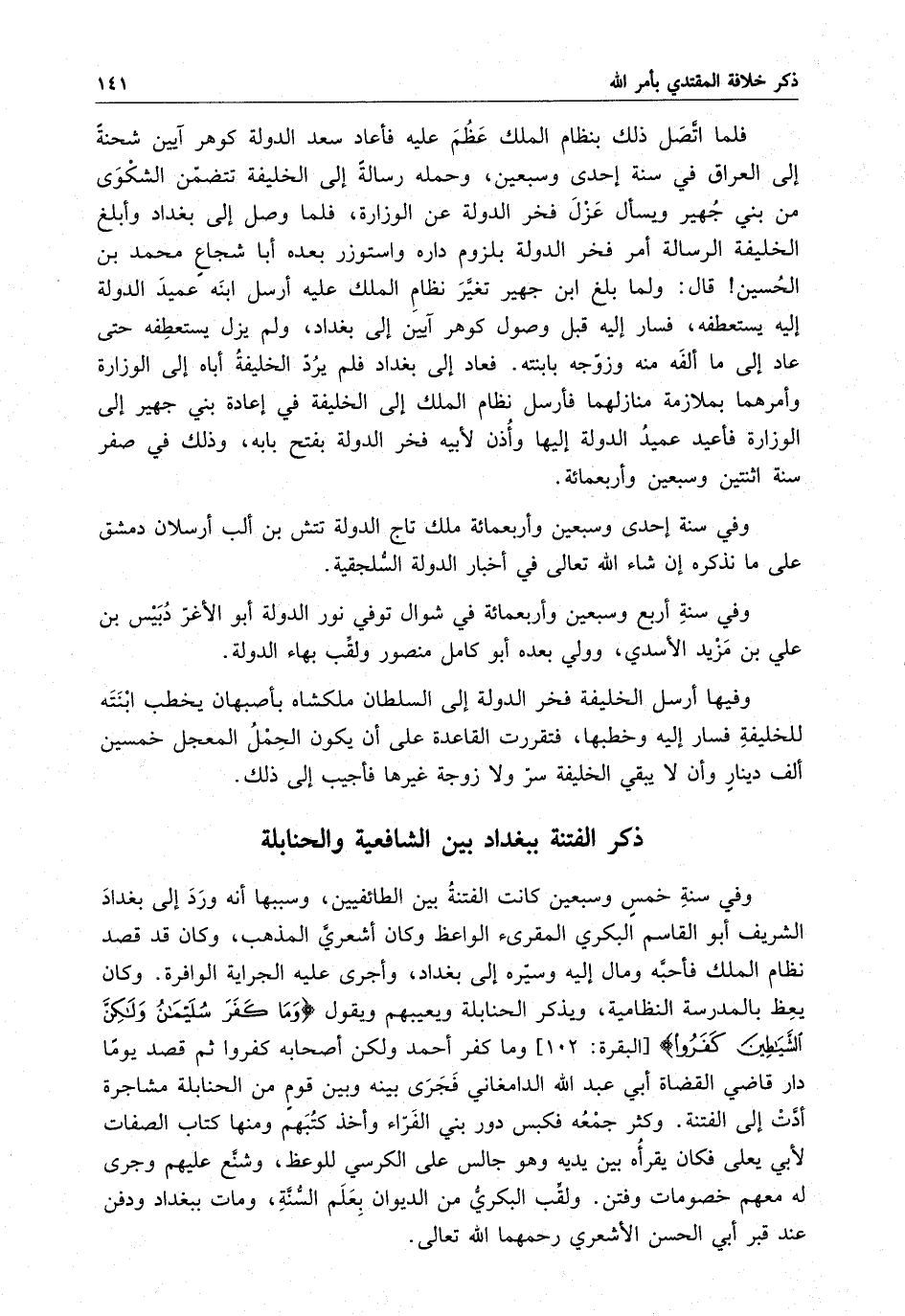 ذكر الفتنة ببغداد بين الشافعية والحنابلة