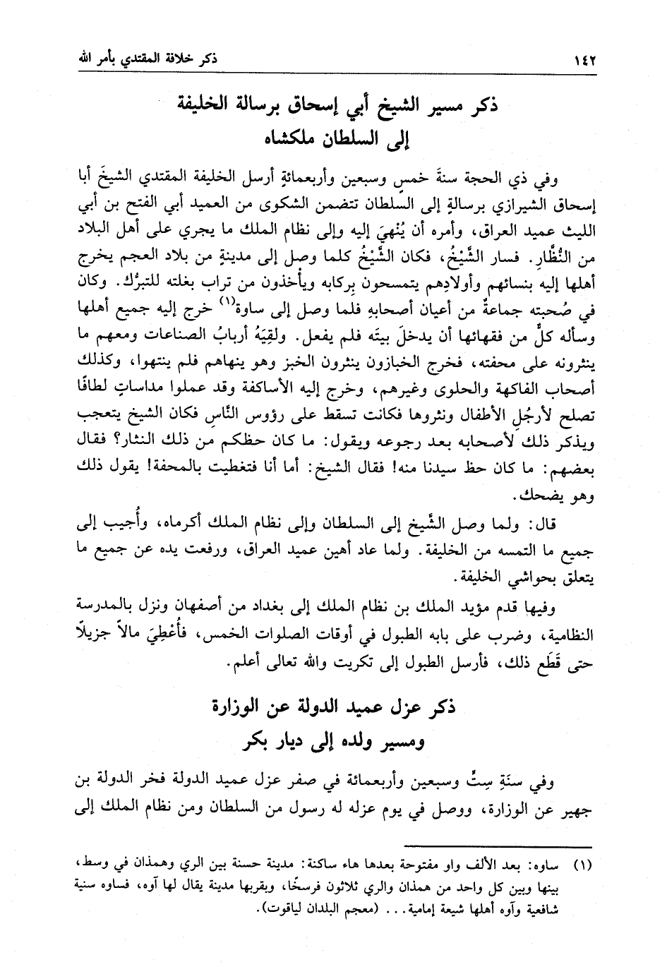ذكر مسير الشيخ أبي إسحاق برسالة الخليفة إلى السلطان ملكشاه