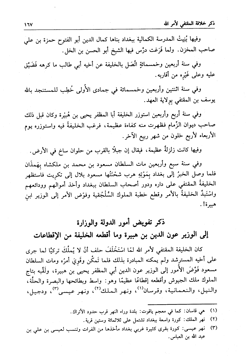 ذكر تفويض أمور الدولة والوزارة إلى الوزير عون الدين بن هبيرة وما أقطعه الخليفة من الإقطاعات
