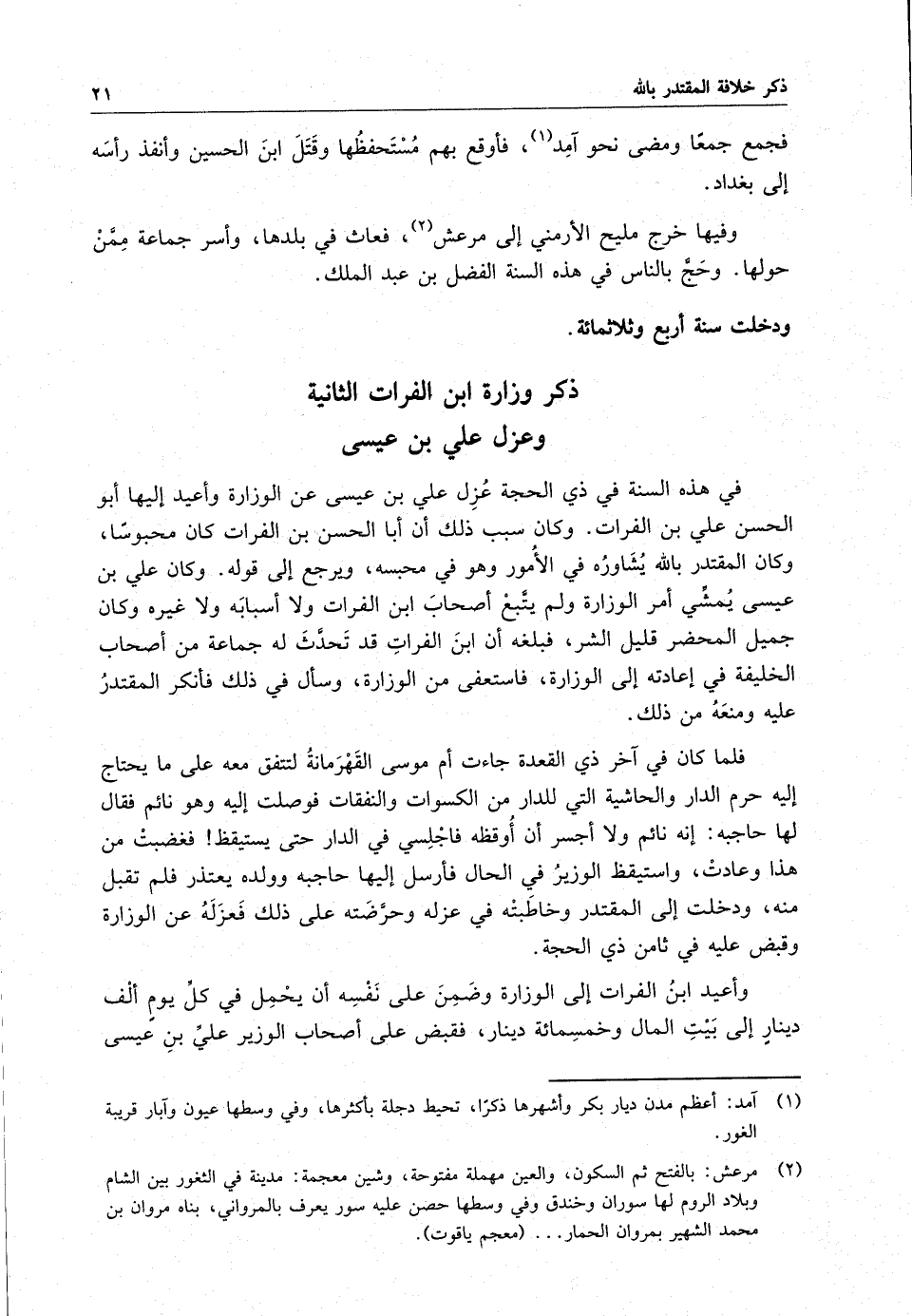 ذكر وزارة ابن الفرات الثانية وعزل علي بن عيسى