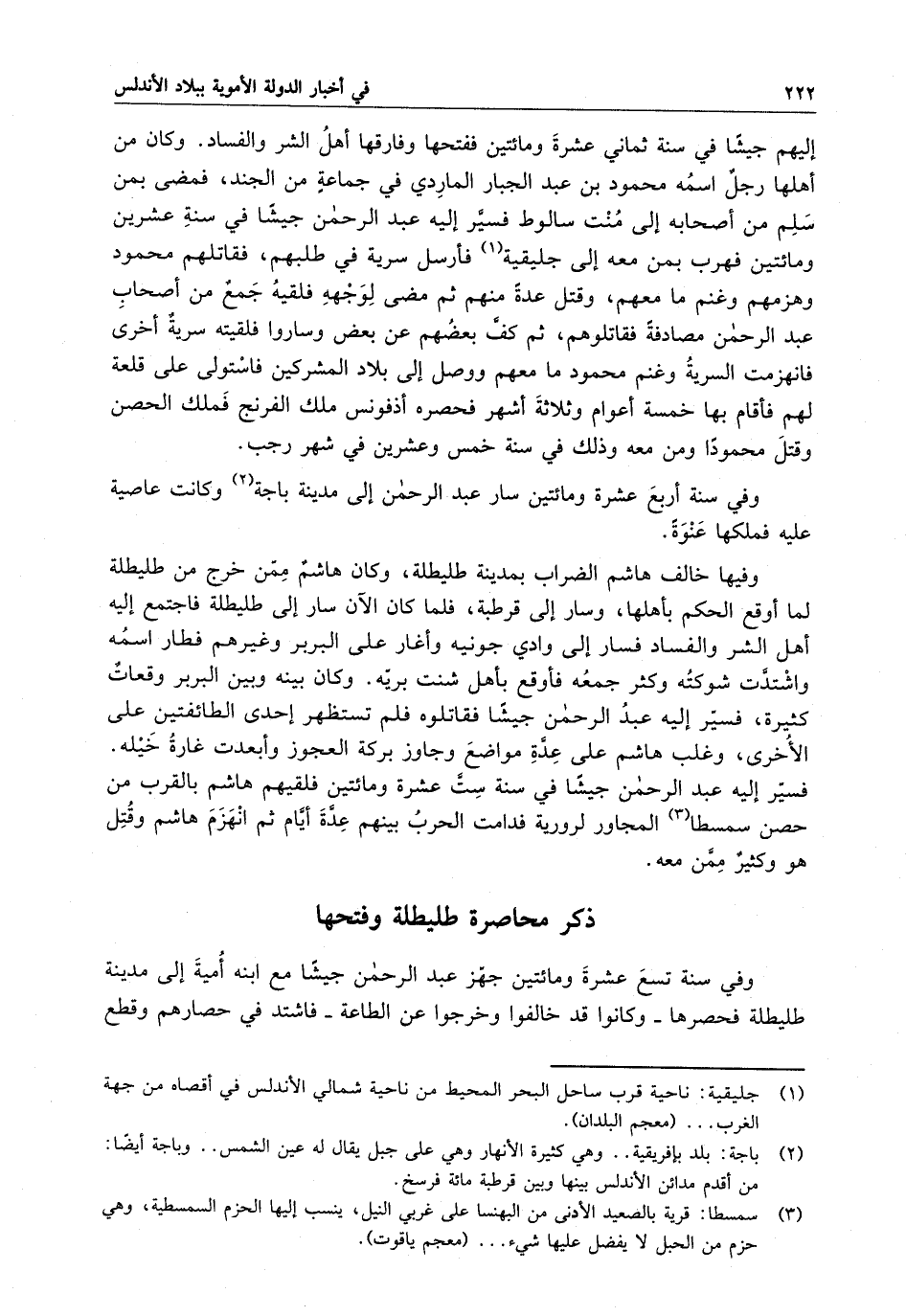 وفي سنة تسع عشرة ومائتين جهز عبد الرحمن جيشاً مع ابنه أمية إلى مدينة طليطلة فحصرها - وكانوا قد خالفوا وخرجوا عن الطاعة - فاشتد في حصارهم وقطع