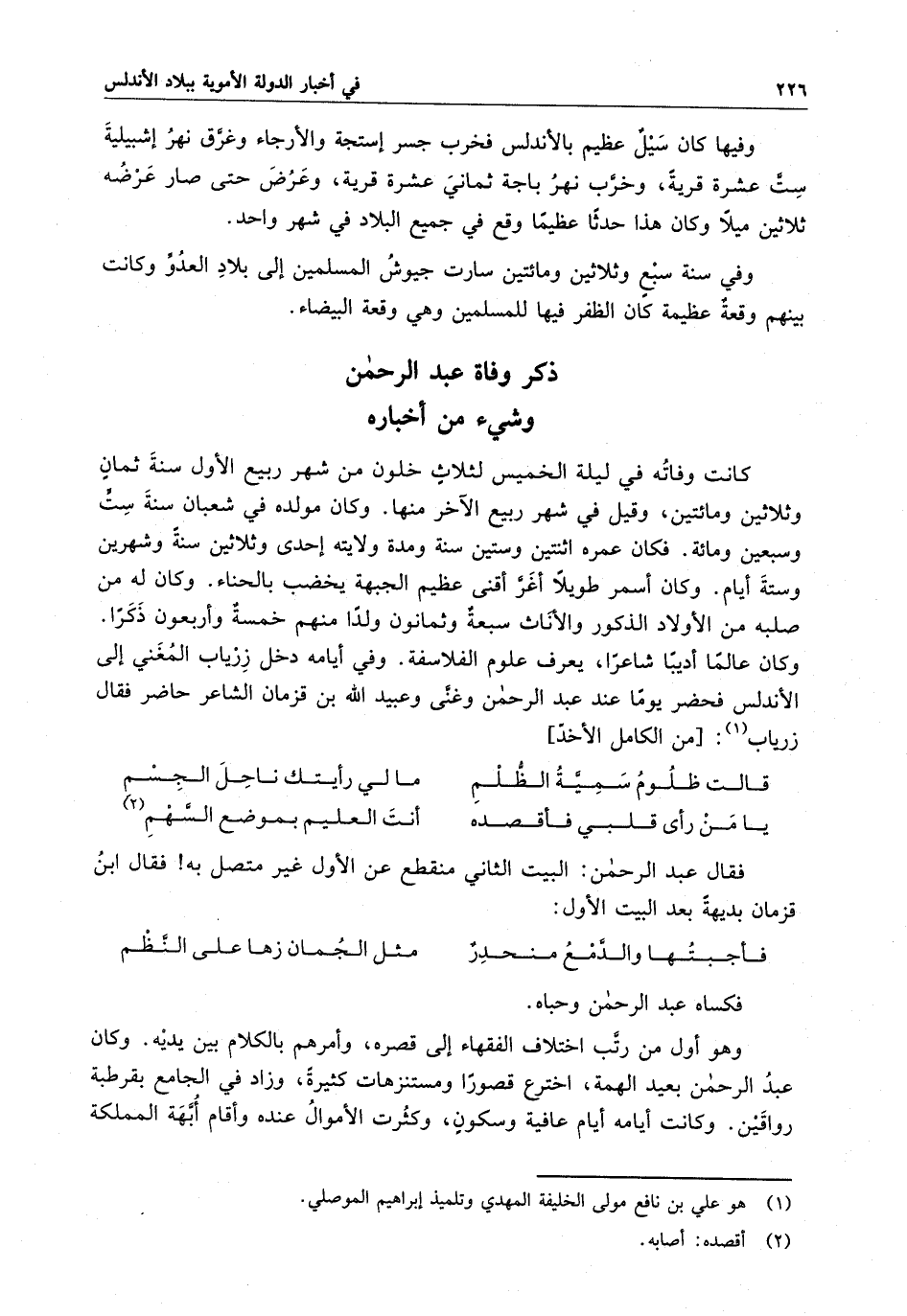 فقال عبد الرحمن : البيت الثاني منقطع عن الأول غير متصل به فقال ابن قزمان بديهة بعد البيت الأول :