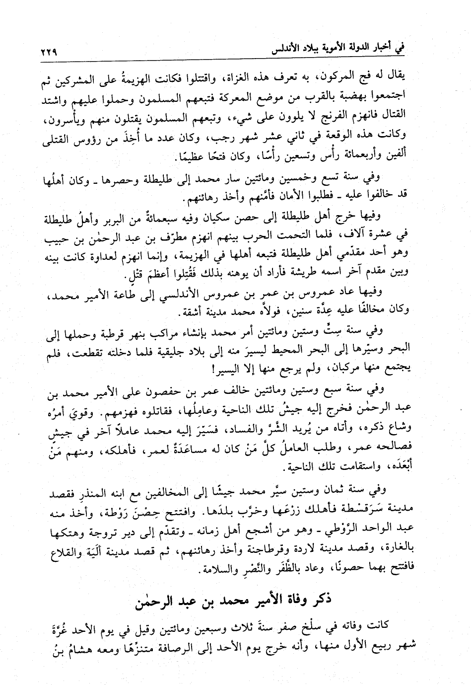 وفيها عاد عمروس بن عمر بن عمروس الأندلسي إلى طاعة الأمير محمد ، وكان مخالفاً عليه عدة سنين ، فولاّه محمد مدينة أشقة .