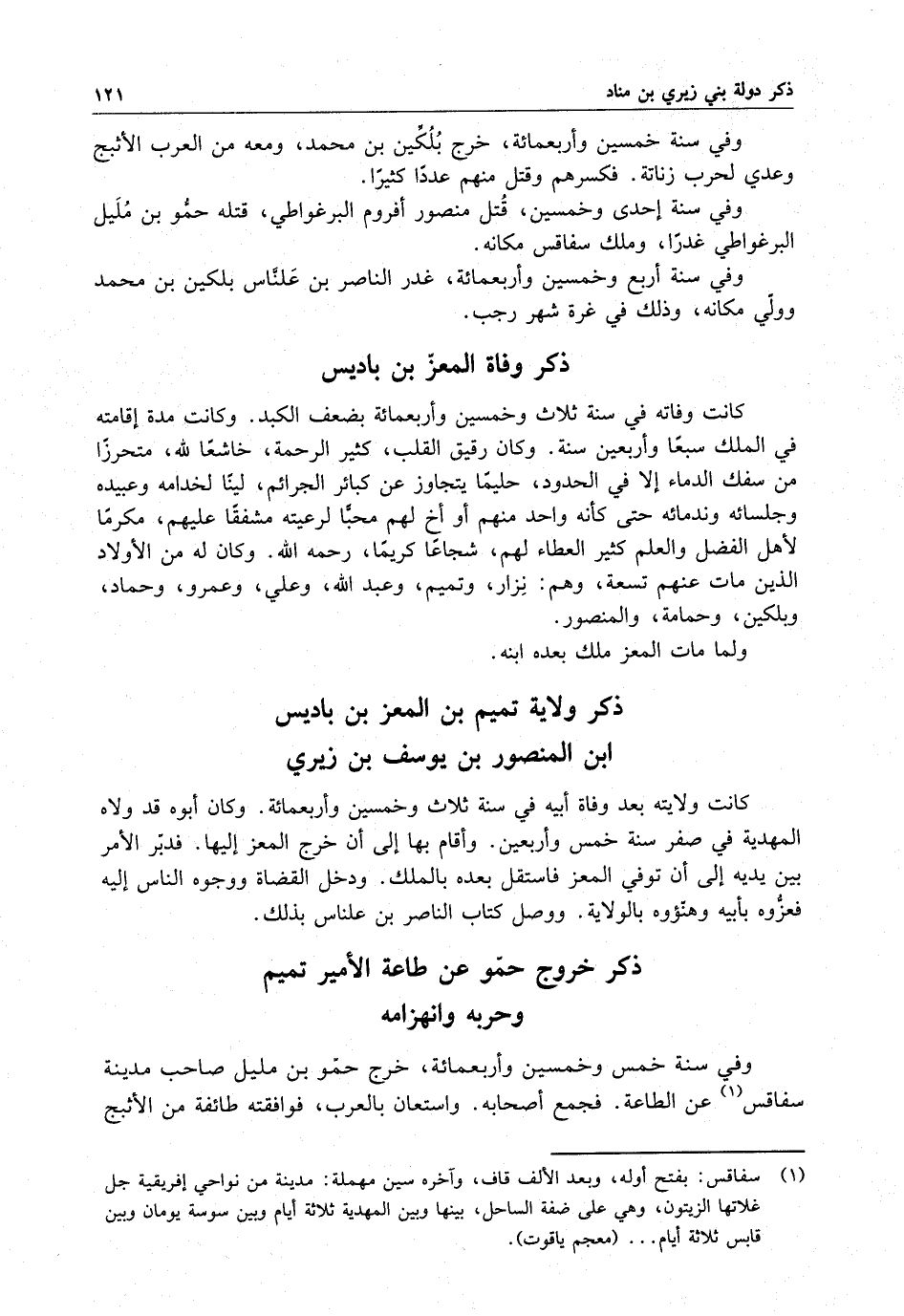 وفي سنة إحدى وخمسين ، قتل منصور أفروم البرغواطي ، قتله حمّو بن مليل البرغواطي غدراً ، وملك سفاقس مكانه .