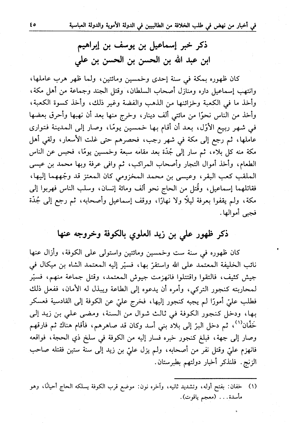 ذكر خبر إسماعيل بن يوسف بن إبراهيم ابن عبد الله بن الحسن بن الحسن بن علي