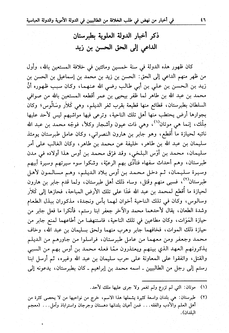 ذكر أخبار الدولة العلوية بطبرستان الداعي إلى الحق الحسن بن زيد