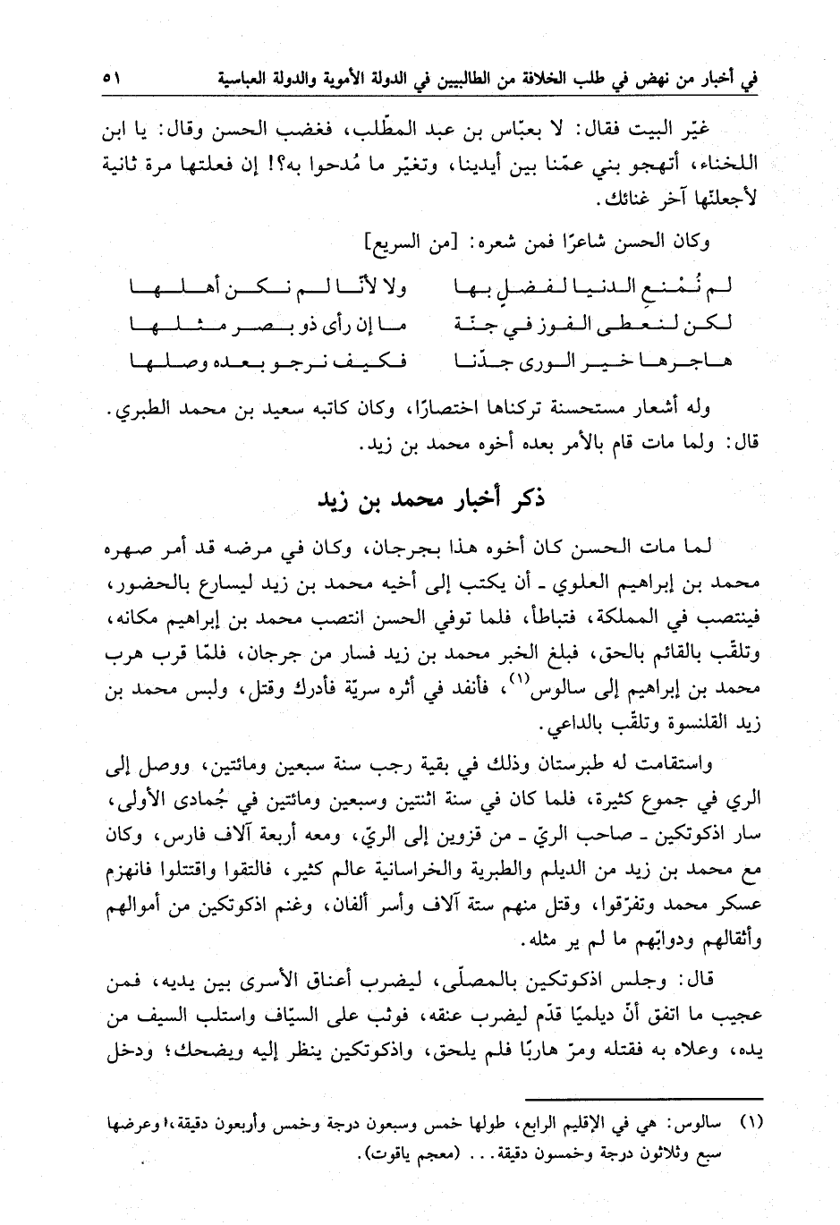 وله أشعار مستحسنة تركناها اختصاراً ، وكان كاتبه سعيد بن محمد الطبري . قال : ولما مات قام بالأمر بعده أخوه محمد بن زيد .