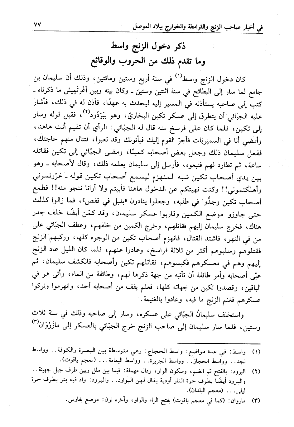 واستخلف سليمان الجبائي على عسكره ، وسار إلى صاحبه وذلك في سنة ثلاث وستين ، فلما سار سليمان إلى صاحب الزنج خرج الجبائي بالعسكر إلى مازروان
