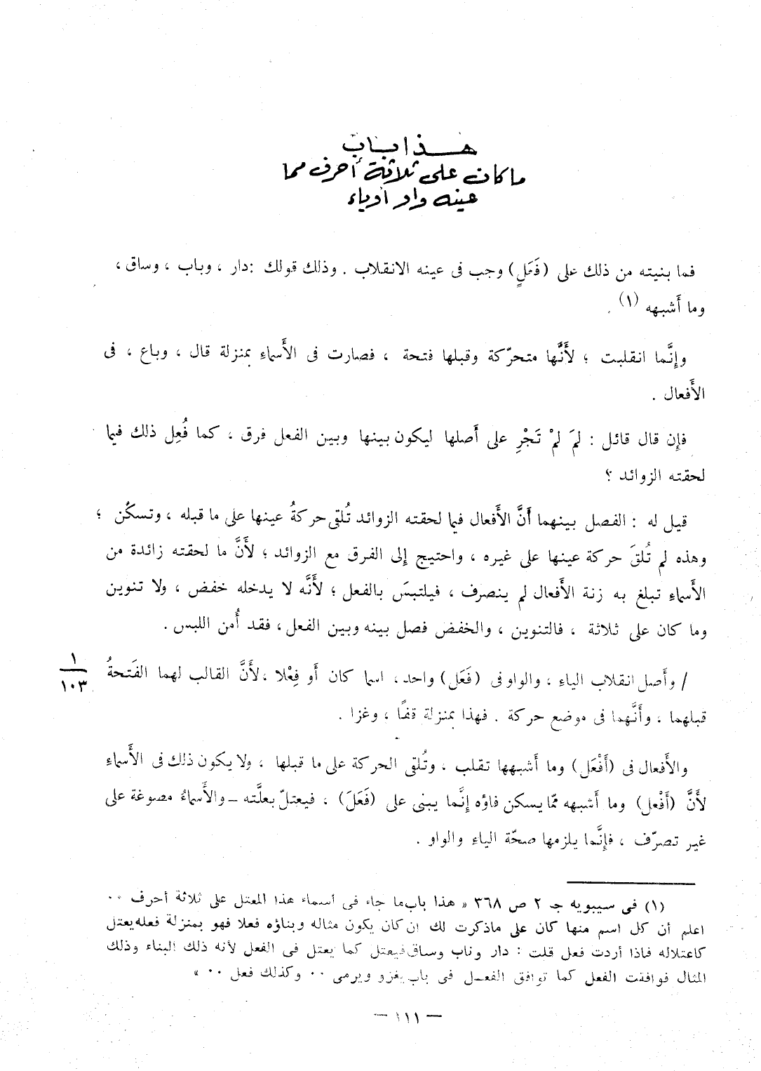 (هَذَا بَاب مَا كَانَ على ثَلَاثَة أَحرف مِمَّا عينه وَاو أَو يَاء)