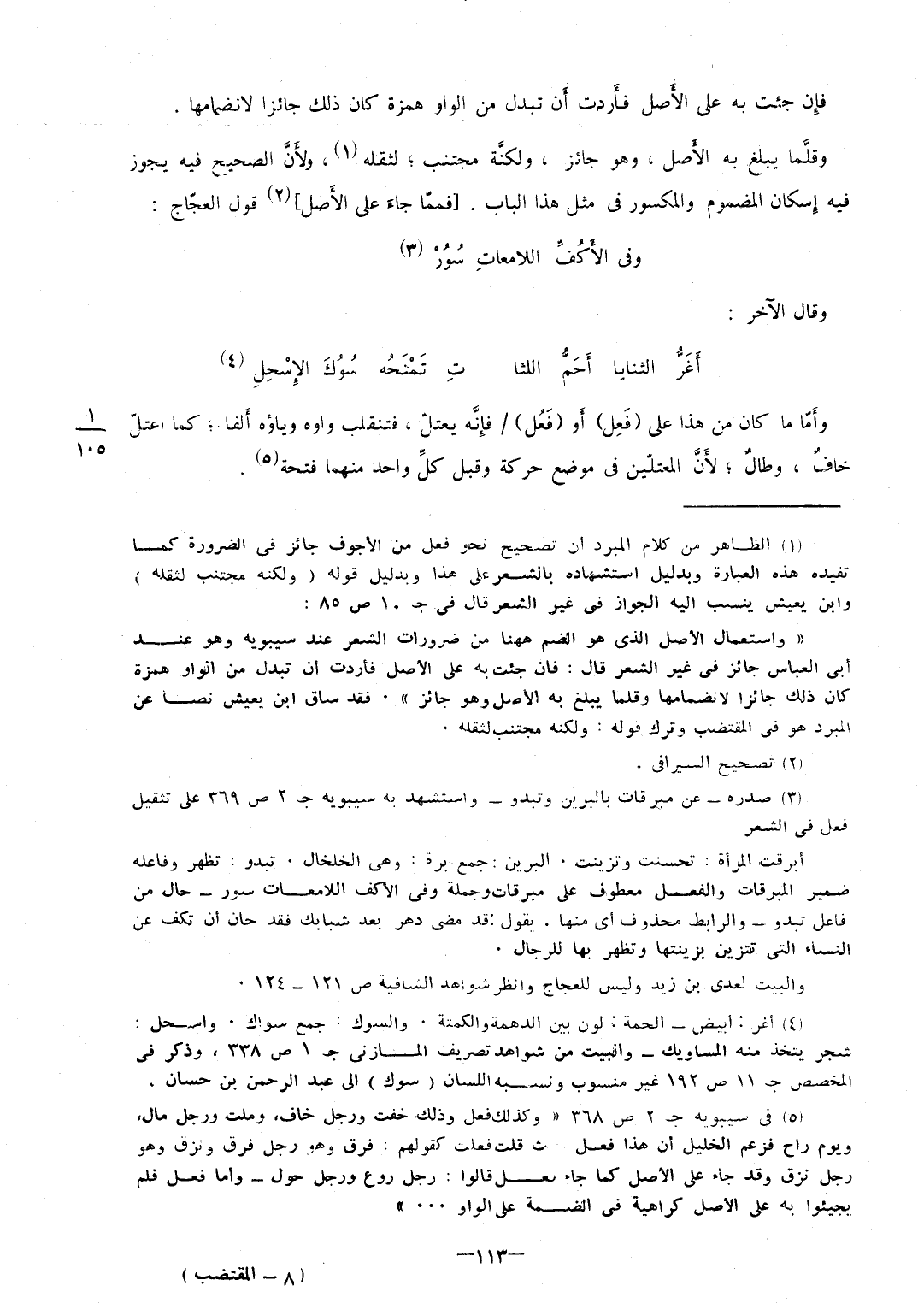 فإِن جِئْت بِهِ على الأَصل فأَردت أَن تبدل من الْوَاو همزَة كَانَ ذَلِك جَائِزا لانضمامها وقلَّما يبلغ بِهِ الأَصل وَهُوَ جَائِز ولكنَّه مجتنب لثقله ولأَن الصَّحِيح فِيهِ يجوز فِيهِ إِسكان المضموم والمكسور فِي مثل هَذَا الْبَاب {فممّا جاءَ على الأَصل} قَول العجّاج