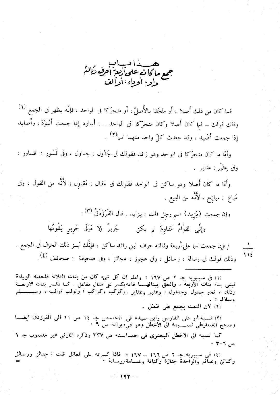 (هَذَا بَاب جمع مَا كَانَ على أَرْبَعَة أحرف وثالثه وَاو أَو يَاء أَو ألف)