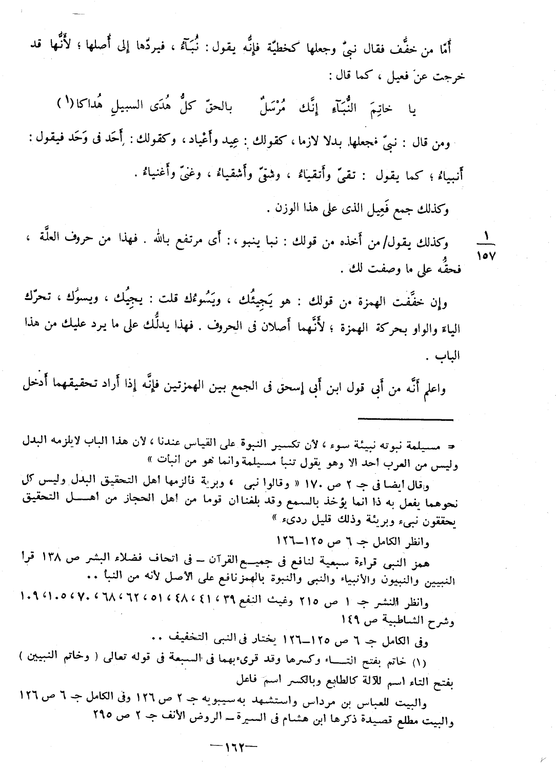 وَمن قَالَ نبيّ فَجَعلهَا بَدَلا لَازِما كَقَوْلِك عِيد وأَعْياد وكقولك أَحَد فِي وَحَد فَيَقُول أَنبياءُ كَمَا يَقُول تقيّ وأَتقياءُ وشقيّ وأَشقياءُ وغنيّ وأَغنياءُ وَكَذَلِكَ جمع فَعِيل الَّذِي على هَذَا الْوَزْن وَكَذَلِكَ يَقُول / من أَخذه من قَوْلك نبا ينبو أَي مُرْتَفع بِاللَّه فَهَذَا من حُرُوف العلَّة فحقُّه على مَا وصفت لَك وإِن خفَّفت الْهمزَة من قَوْلك هُوَ يَجِيئُك ويَسُوءُك قلت يجِيُك ويسوُك تحرّك الياءَ وَالْوَاو بحركة الْهمزَة لأَنَّهما أَصلان فِي الْحُرُوف فَهَذَا يدلُّك على مَا يرد عَلَيْك من هَذَا الْبَاب وَاعْلَم أَنَّه من أَبي قَول ابْن أَبي إِسحق فِي الْجمع بَين الهمزتين فإِنَّه إِذا أَراد تحقيقهما أَدخل