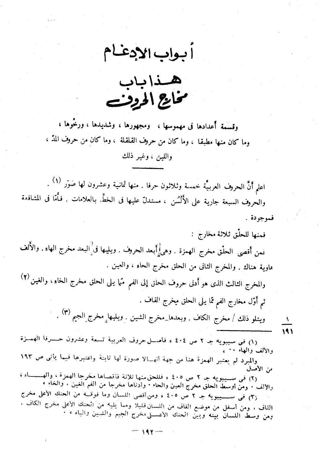 (هَذَا بَاب مخارج الْحُرُوف)