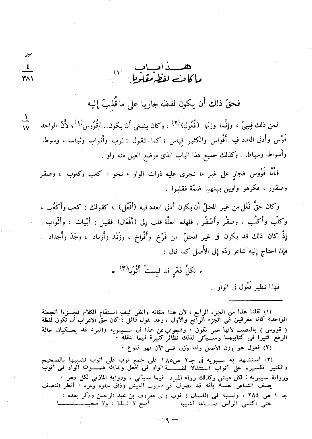 (هَذَا بَاب مَا كَانَ لَفظه مقلوبا فحقَّ ذَلِك أَن يكون لَفظه جَارِيا على مَا قُلِبَ إِليه)
