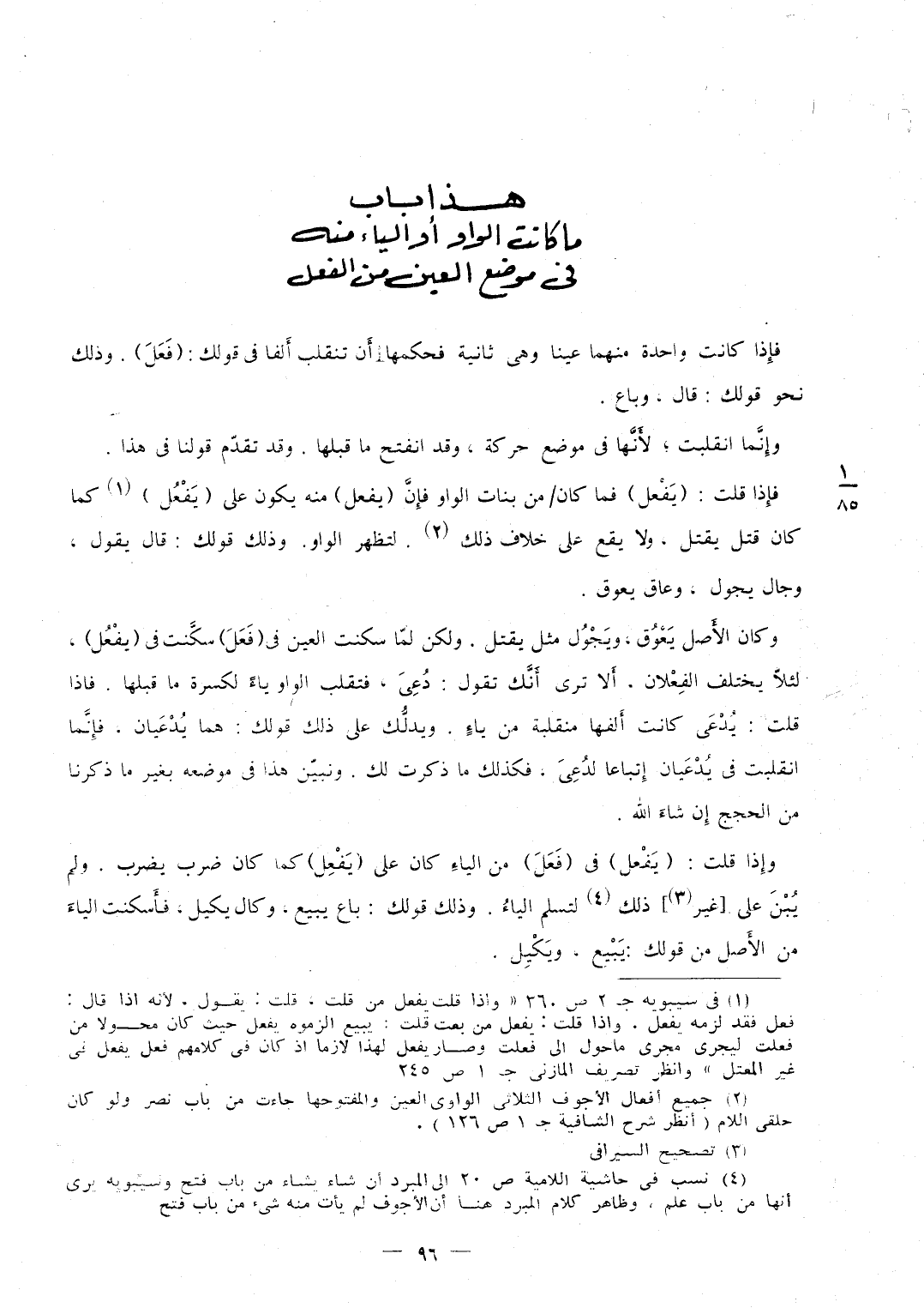 (هَذَا بَاب مَا كَانَت الْوَاو أَو الْيَاء مِنْهُ فِي مَوضِع الْعين من الْفِعْل)