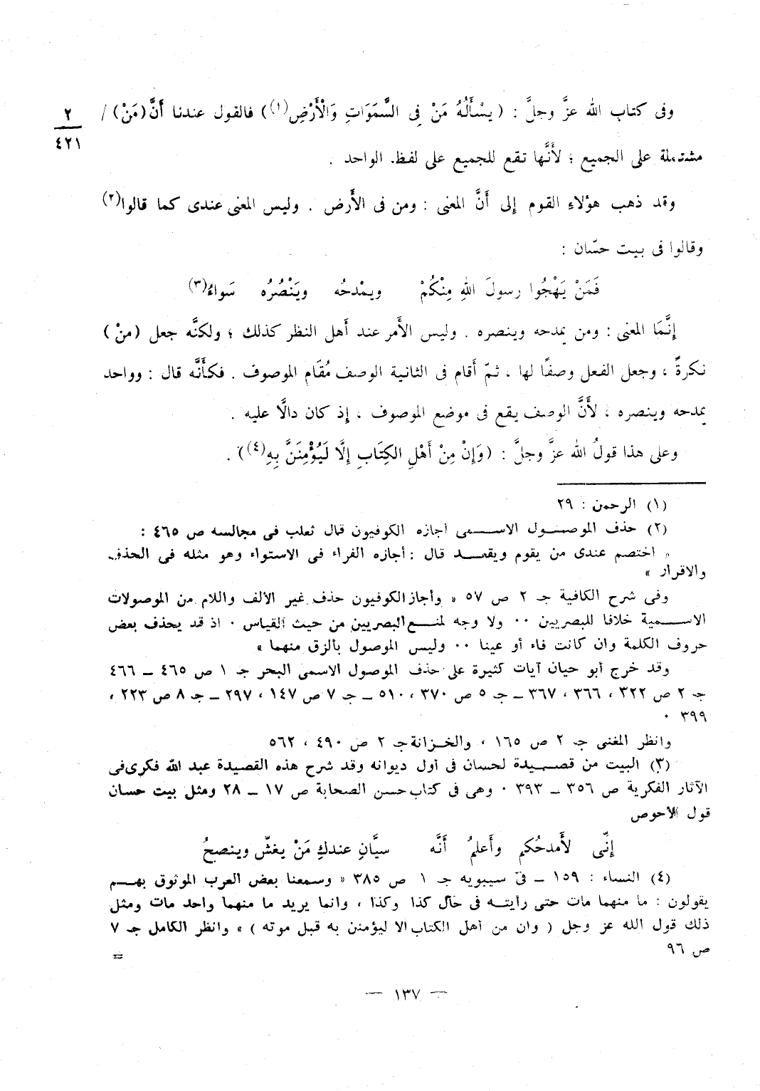 وَأما مَا ذكرت لَك أَنه يَقع فِي مَعْنَاهُمَا مقاربا لَهما فنحو فعل نَحْو لكرم زيد ولظرف زيد وَكَذَلِكَ حبذا وَنحن ذاكرو كل بَاب من هَذَا على حياله إِن شَاءَ الله أما نعم وَبئسَ فَلَا يقعان إِلَّا على مُضْمر يفسره مَا بعده وَالتَّفْسِير لَازم أَو على معرفَة بِالْألف وَاللَّام على معنى الْجِنْس ثمَّ يذكر بعْدهَا الْمَحْمُود والمذموم فَأَما مَا كَانَ معرفَة بِالْألف وَاللَّام فنحو قَوْلك نعم الرجل زيد وَبئسَ الرجل عبد الله وَنعم الدَّار دَارك وَإِن شِئْت قلت نعمت الدَّار لما أذكرهُ لَك إِن شَاءَ الله وبئست الدَّابَّة دابتك وَأما قَوْلك الرجل وَالدَّابَّة وَالدَّار فمرتفعات بنعم وَبئسَ لِأَنَّهُمَا فعلان يرْتَفع بهما فاعلاهما وَأما قَوْلك زيد وَمَا أشبهه فَإِن رَفعه على ضَرْبَيْنِ
