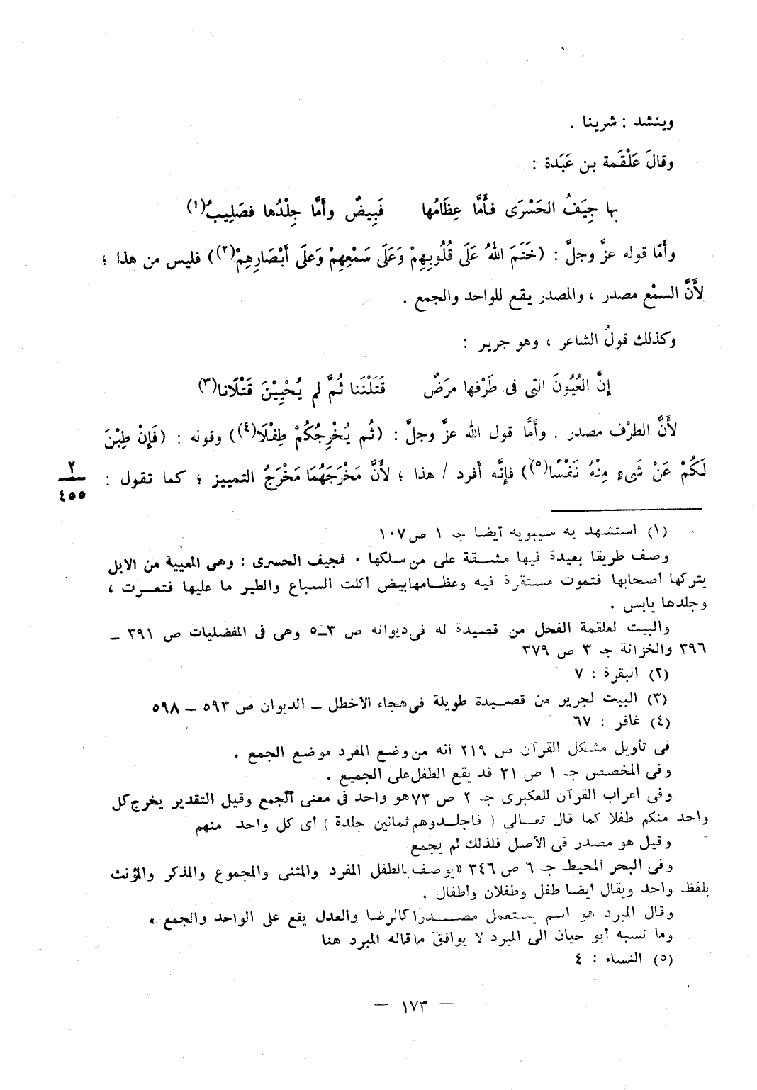 دِرْهَم وَإِنَّمَا الْمَعْنى كل من جَاءَنِي من الرِّجَال إِذا كَانُوا وَاحِدًا وَاحِدًا فَلهُ دِرْهَم أَلا تراك تَقول كل اثْنَيْنِ جاءاني أكرمهما لِأَنَّك تُرِيدُ الَّذين يجيؤنك اثْنَيْنِ اثْنَيْنِ فَلَو قلت كل الِاثْنَيْنِ أَو كل الرجل على هَذَا لاستحال ففساد هَذَا بَين جدا وبنبغي لمن تبين فَسَاد مَا قَالَه أَن يرجع من قبل إِلَى حَقِيقَة الْقيَاس وَلَا يمض على التَّقْلِيد