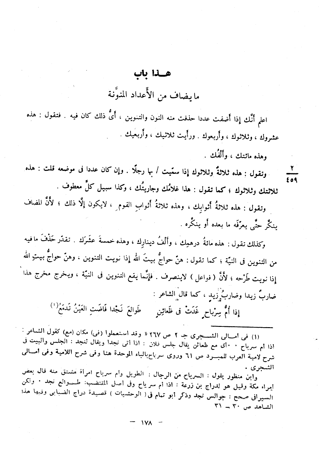 وَتلك الأولى لَا يجوز أَن تنصب بهَا لآن الْمَعْنى أحد ثَلَاثَة وَأحد أَرْبَعَة فَتَقول على هَذَا القَوْل هَذَا رَابِع أَرْبَعَة إِذا كَانَ هُوَ وَثَلَاث نسْوَة لِأَنَّهُ قد دخل مَعَهُنَّ فَقلت أَرْبَعَة بالتذكير لِأَنَّهُ إِذا اجْتمع مُذَكّر ومؤنت جعل الْكَلَام على التَّذْكِير لِأَنَّهُ الأَصْل وَتقول على القَوْل الآخر هَذَا رَابِع ثَلَاث يَا فَتى لِأَنَّهُ لم يدْخل مَعَهُنَّ وَإِنَّمَا مِثَاله هَذَا ضَارب ثَلَاث فعلى هَذَا فأجر هَذَا الْبَاب فَإِذا جَاوز العقد الأول فَإِن الْقيَاس على الْمَذْهَب الأول وَهُوَ هَذَا ثَالِث ثَلَاثَة ورابع أَرْبَعَة أَي أحد ثَلَاثَة وَأحد أَرْبَعَة أَن تَقول هَذَا حادي عشر أحد عشر وخامس عشر وَخَمْسَة عشر لَكِن الْعَرَب تستثقل اضافته على التَّمام لطوله فَيَقُولُونَ هَذَا حادي أحد عشر وخامس خَمْسَة عشر فيرفعون الأول بِمَا يرفعهُ وينصبونه بِمَا ينصبه ويخفضونه بِمَا يخفضه لِأَنَّهُ مُعرب وَإِنَّمَا مَنعهم من بنائِهِ أَن ثَلَاثَة أَسمَاء لاتجعل اسْما وَاحِدًا فِي غير الْإِضَافَة وَإِنَّمَا شبه خَمْسَة عشر بحضرموت وَبني لما ذكرنَا من إِزَالَته عَن مَوْضِعه فَإِن قلت هَذَا حادي عشر وخامس عشر كَمَا تَقول هَذَا خَامِس وسادس بنيته على الْفَتْح لِأَنَّهُمَا اسمان فحالهما كَحال خَمْسَة عشر وَنَحْوه فعلى هَذَا الْقيَاس يجْرِي هَذَا الْعدَد فَإِن قلت على قِيَاس قَول من قَالَ هَذَا رابعٌ ثَلَاثَة وخامسٌ أَرْبَعَة فَإِن النَّحْوِيين كَانُوا