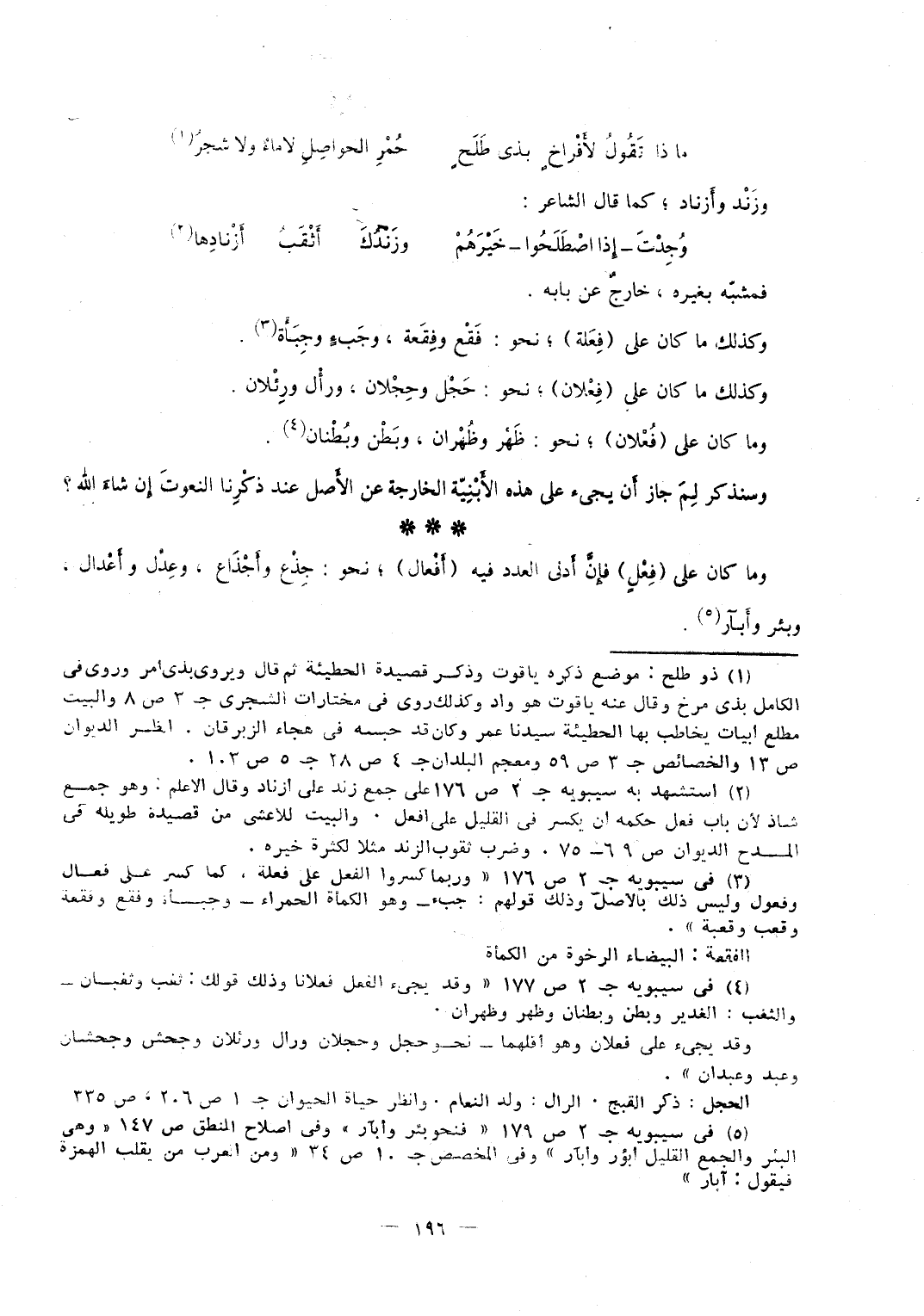 فَيخرج إِلَى ضروب من الْجمع مِنْهَا فعلان كَقَوْلِك حمل وحملان وَكَذَلِكَ فعلان كَقَوْلِك ورل وورلان فَأَما الْبَاب وَالْأَصْل فَمَا صدرنا بِهِ وَكَذَلِكَ فعل بَابه أَفعَال لِأَنَّهُ كَفعل فِي الْوَزْن وَإِن خَالفه فِي حَرَكَة الثَّانِي نَحْو كتف وأكتاف وفخذ وأفخاذ وكبد وأكباد