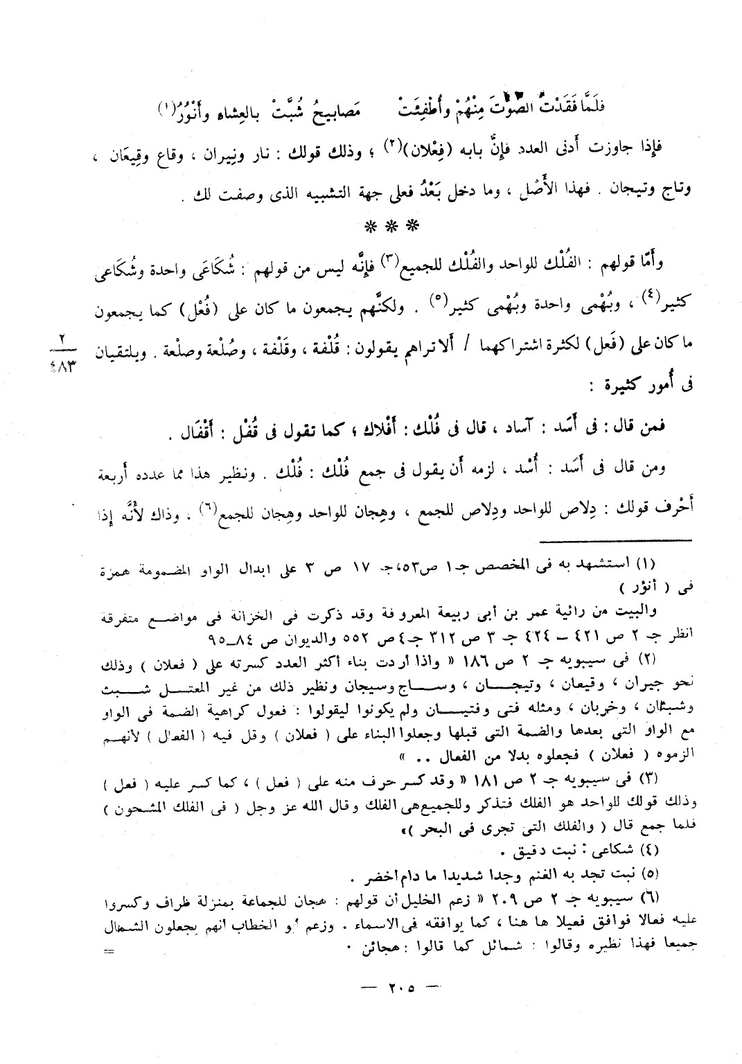 أما مَا كَانَ من ذَلِك على فعيل فَإِن أدنى الْعدَد أَفعلهُ وَذَلِكَ قَوْلك قفيز وأقفزة وجريب واجربة ورغيف وأرغفة فَإِذا جَاوَزت أدنى الْعدَد فَإِنَّهُ يَجِيء على فعل وعَلى فعلان نَحْو قضيب وقضب ورغيف ورغف وكثيب وكثب وَيُقَال أَيْضا رغفان وكثبان وقضبان فَهَذَا بَابه وَقد تكون الْأَسْمَاء من هَذَا على فعلاء نَحْو نصيب وأنصباء وصديق وأصدقاء لِأَنَّهُ يجْرِي مجْرى الْأَسْمَاء وخميس وأخمساء فَإِن كَانَ مضاعفا أَو مُعْتَلًّا فَهُوَ يجْرِي على افعلاء أَيْضا كَرَاهِيَة أَن تعتور
