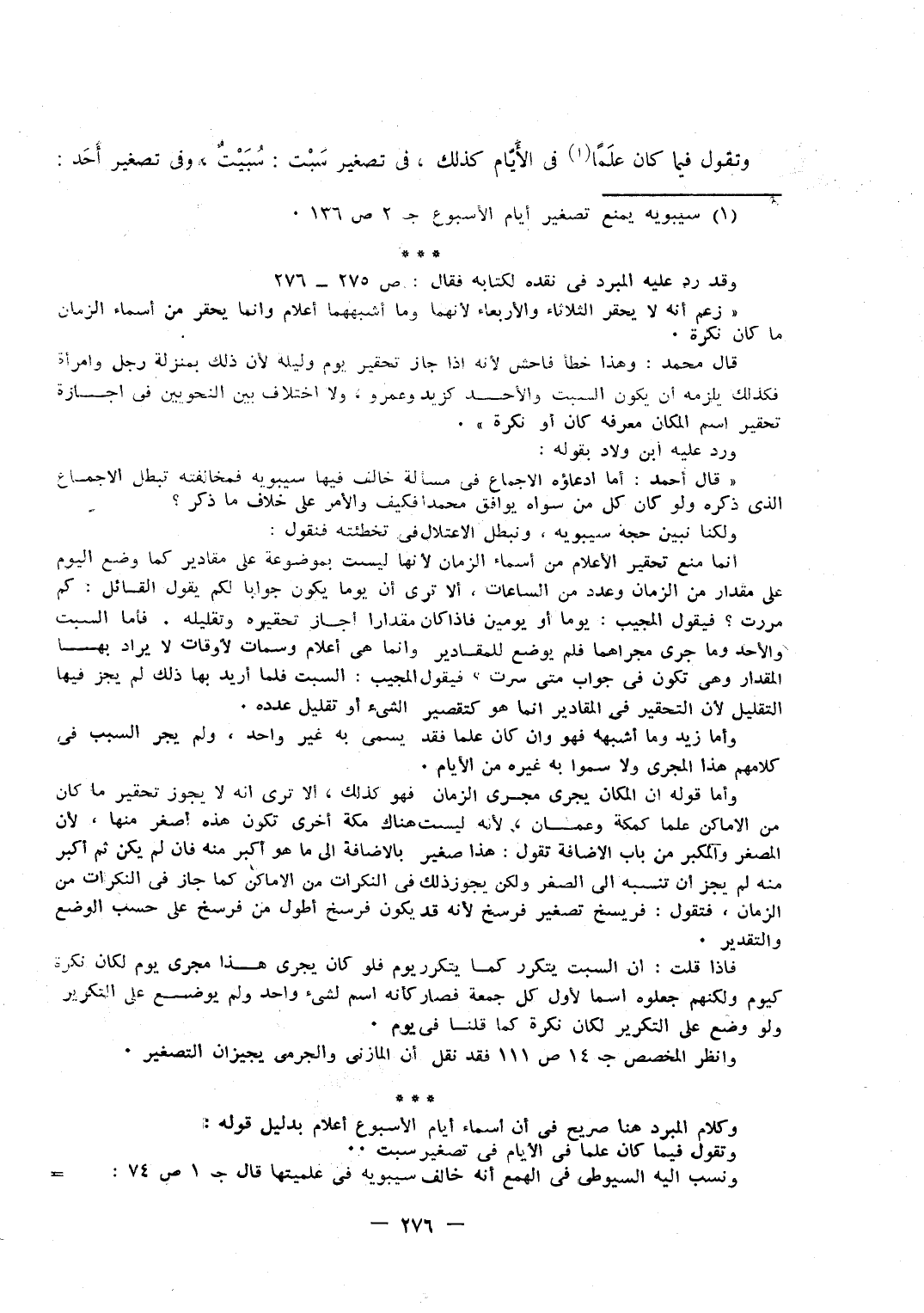 اعْلَم أَن هَذَا الْجمع يَنْقَلِب ياؤه وواوه ألفا لانفتاح مَا قبل كل وَاحِد مِنْهُمَا نَحْو دَار وغار وَبَاب إِلَّا أَن يَجِيء حرف على أَصله لعِلَّة مَذْكُورَة فِي بَاب التصريف نَحْو الْقود وَالصَّيْد والخونة والحوكة فَأَما مجْرى الْبَاب فعلى مَا ذكرت لَك فَإِن صغرت شَيْئا من ذَلِك أظهرت فِيهِ حرف الأَصْل وَذَلِكَ أَن يَاء التصغير نقع بعده سَاكِنة فَلَا يجوز أَن تسكنه فتجمع بَين ساكنين فَإِذا حركته عَاد إِلَى أَصله وَذَلِكَ قَوْلك فِي تحقير نَار نُوَيْرَة وَبَاب بويب يذلك على أَن الْوَاو الأَصْل قَوْلك أنوار لِأَنَّهَا من النُّور وقولك بوبت لَهُ بَابا وَكَذَلِكَ غَار تَقول غوير لِأَنَّهُ من غَار يغور فَأَما نَاب فتصغيره نييب فَإِن قلت نييب فَإِن ذَلِك يجوز فِي كل مَا كَانَ ثَانِيه يَاء فِي التصغير لِأَنَّهُ من نيبت وَكَذَلِكَ غَار تَقول فِيهِ غيير وغيير لِأَنَّهُ من غيرت ونيبت