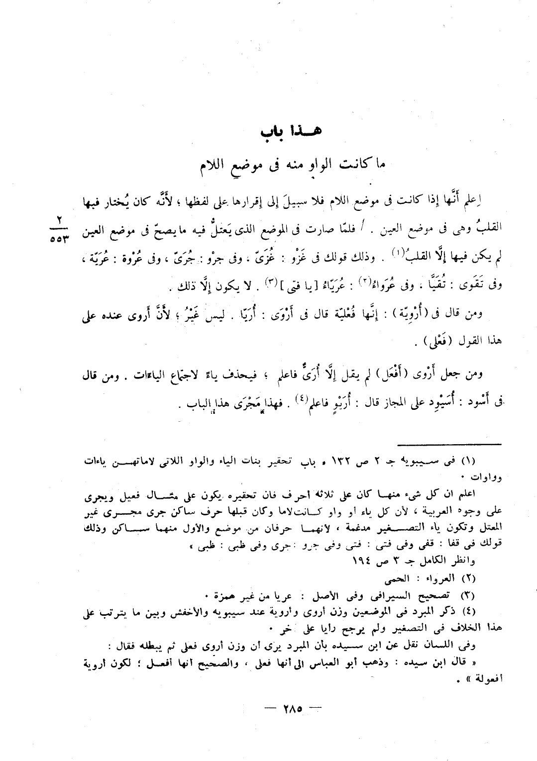 وَإِن حقرت أُولَئِكَ قلت أوليائك وَإِن حقرت أولى الْمَقْصُور قلت أوليا يَا فَتى وَإِن حقرت هَؤُلَاءِ الْمَمْدُود قلت هاؤليائك وَإِن حقرت هَؤُلَاءِ الْمَقْصُور قلت هاؤليا يَا فَتى وَإِنَّمَا زِدْت الْألف قبل آخرهَا لِئَلَّا يتَحَوَّل الْمَمْدُود عَن لَفظه فقلبوا لذَلِك وَكَانَ حَقِيقَتهَا هؤلييا لِأَن ألاء فِي وزن غراب وتحقير غراب غَرِيب وتحقير أولى لَو كَانَ غير مُبْهَم أولى فَاعْلَم فَإِن زِدْت الْألف أَوْلِيَاء وَتقول فِي تحقير الَّذِي اللذيا وَفِي تحقير الَّتِي اللتيا قَالَ الشَّاعِر