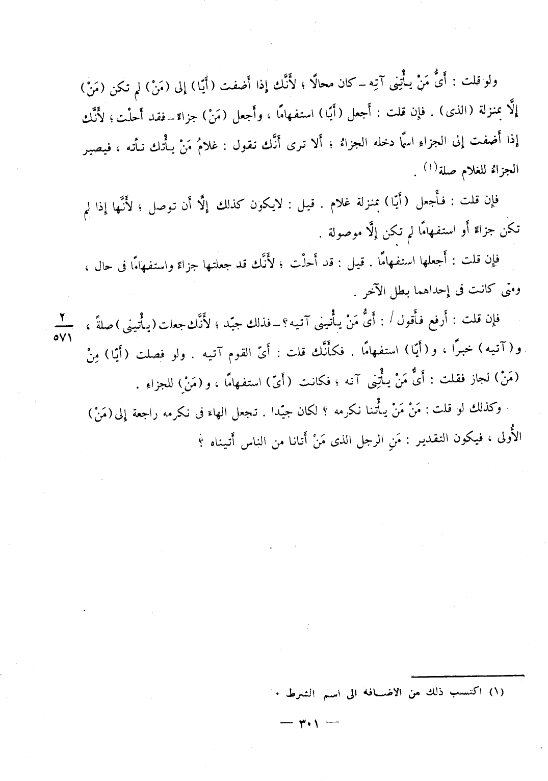 وَاعْلَم انه إِذا ذكر شَيْء من غير الْآدَمِيّين وَقعت عَلَيْهِ أَي كَمَا تقع على الْآدَمِيّين لِأَنَّهَا عَامَّة وَلَيْسَت كمن وَذَلِكَ أَنه لَو قَالَ ركبت حمارا لَكَانَ الْجَواب أيا أَو قَالَ مَرَرْت بِحِمَار لَقلت أَي يَا فَتى فَإِن وقفت قلت أَي على مَا شرحت لَك وَإِن قَالَ هَذَا الْحمار قلت أَي الْحمار كَمَا كنت قَائِلا فِي الْآدَمِيّين