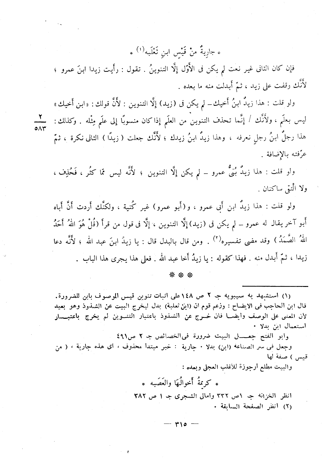 (وَبَلَدٍ ليسَ بِهِ أنيسُ)