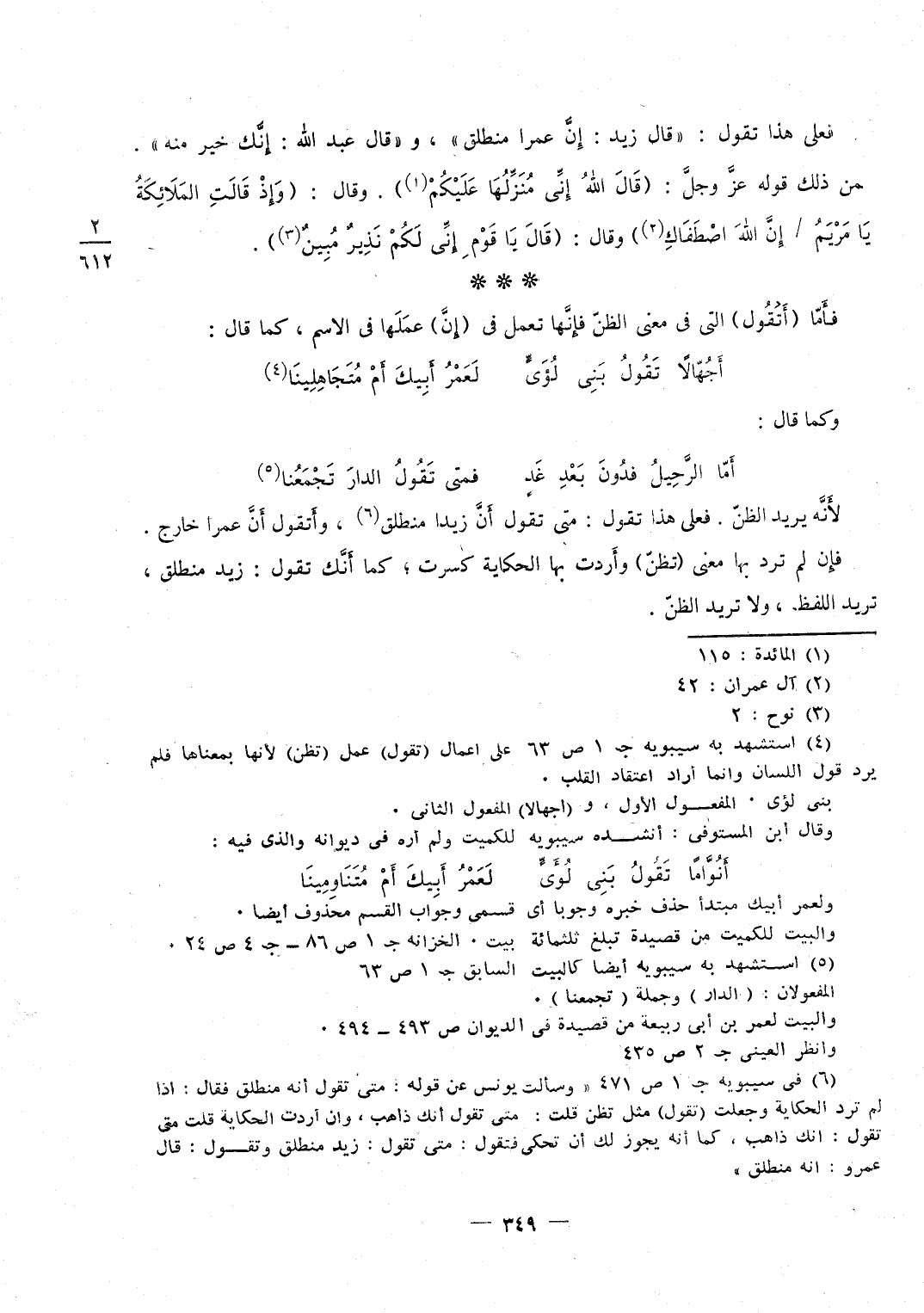 وَتقول أَلا انه منطلق فألا تَنْبِيه وَأَنه مُبْتَدأ وَتقول أما إِنَّه منطلق على ذَلِك الْمَذْهَب وَلَو قلت أما أَنه منطلق جَازَ على معنى حَقًا أَنه منطلق إِذا أردْت بهَا فِي التَّحْقِيق والتوكيد مَا أردْت بِقَوْلِك حَقًا لأَنهم يضعونها فِي موضعهَا فَهَذَا قِيَاس مطرد فِيمَا ذكرت لَك