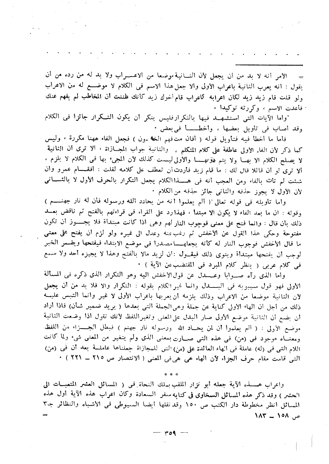 والموضع الثَّالِث أَن تكون إِن الْمَكْسُورَة المخففة من الثَّقِيلَة فَإِذا رفعت مَا بعْدهَا لزمك أَن تدخل اللَّام على الْخَبَر وَلم يجز غير ذَلِك لِأَن لَفظهَا كَلَفْظِ الَّتِي فِي معنى مَا وَإِذا دخلت اللَّام علم أَنَّهَا الْمُوجبَة لَا النافية وَذَلِكَ قَوْلك إنْ زيد منطلق وعَلى هَذَا قَوْله عز وَجل {إِن كل نفس لما عَلَيْهَا حَافظ} (وإنْ كَانُوا لَيَقُولُونَ} وَإِن نصبت بهَا لم تحتج إِلَى اللَّام إِلَّا أَن تدْخلهَا توكيدا كَمَا تَقول إِن زيدا لمنطلق والموضع الرَّابِع أَن تدخل زَائِدَة مَعَ مَا فتردها إِلَى الِابْتِدَاء كَمَا تدخل مَا على إِن الثَّقِيلَة فتمنعها عَملهَا وتردها إِلَى الِابْتِدَاء فِي قَوْلك إِنَّمَا زيد أَخُوك و {إنَّما يَخْشى الله مِنْ عِبادِهِ العُلَماءُ} وَذَلِكَ قَوْلك مَا أَن يقوم زيد وَمَا أَن زيد منطلق لَا يكون الْخَبَر إِلَّا مَرْفُوعا لما ذكرت لَك قَالَ زُهَيْر
