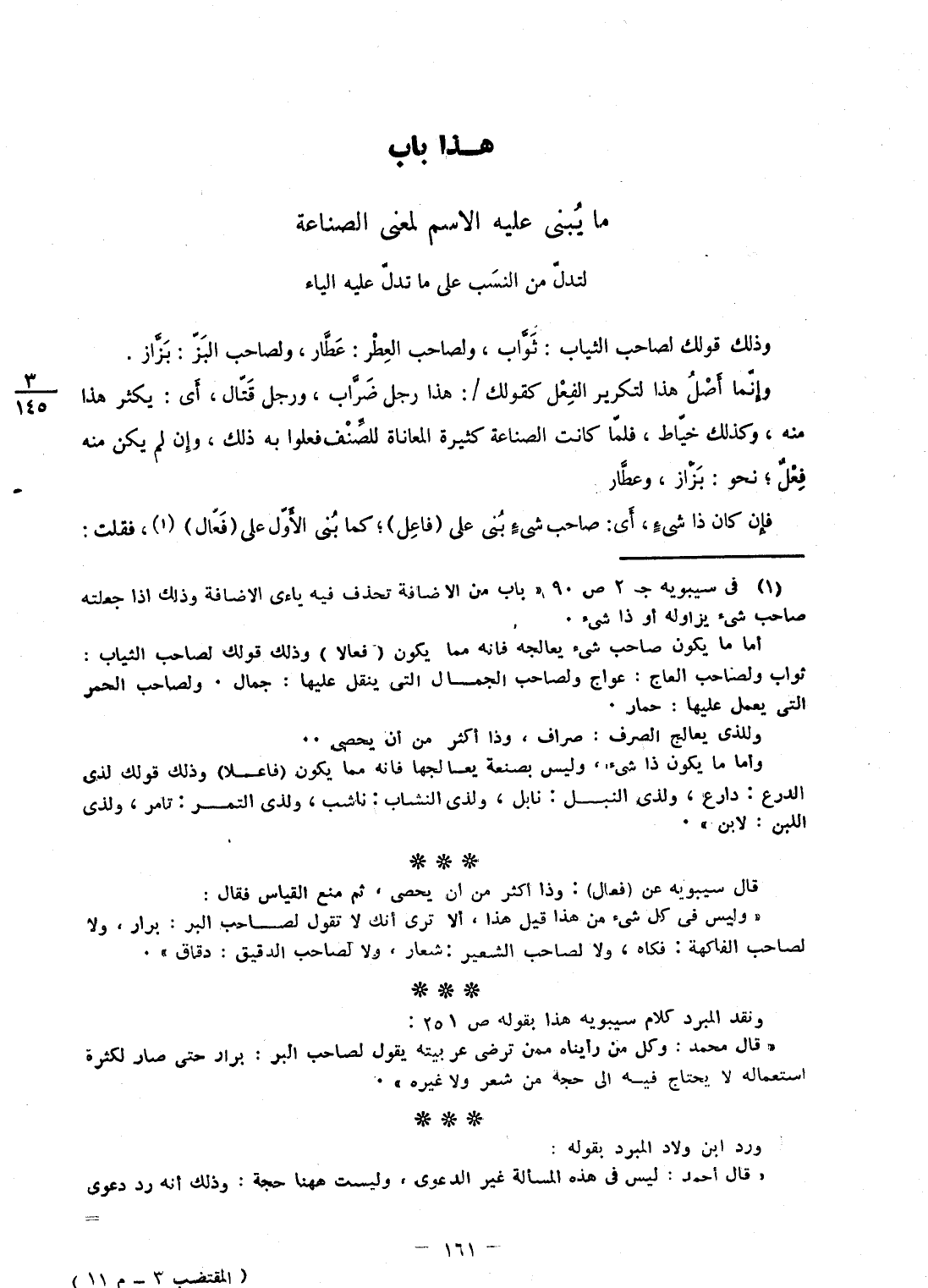 (هَذَا بَاب مَا يبْنى عَلَيْهِ الِاسْم لِمَعْنى الصِّنَاعَة لتدل من النّسَب على مَا تدل عَلَيْهِ الْيَاء)