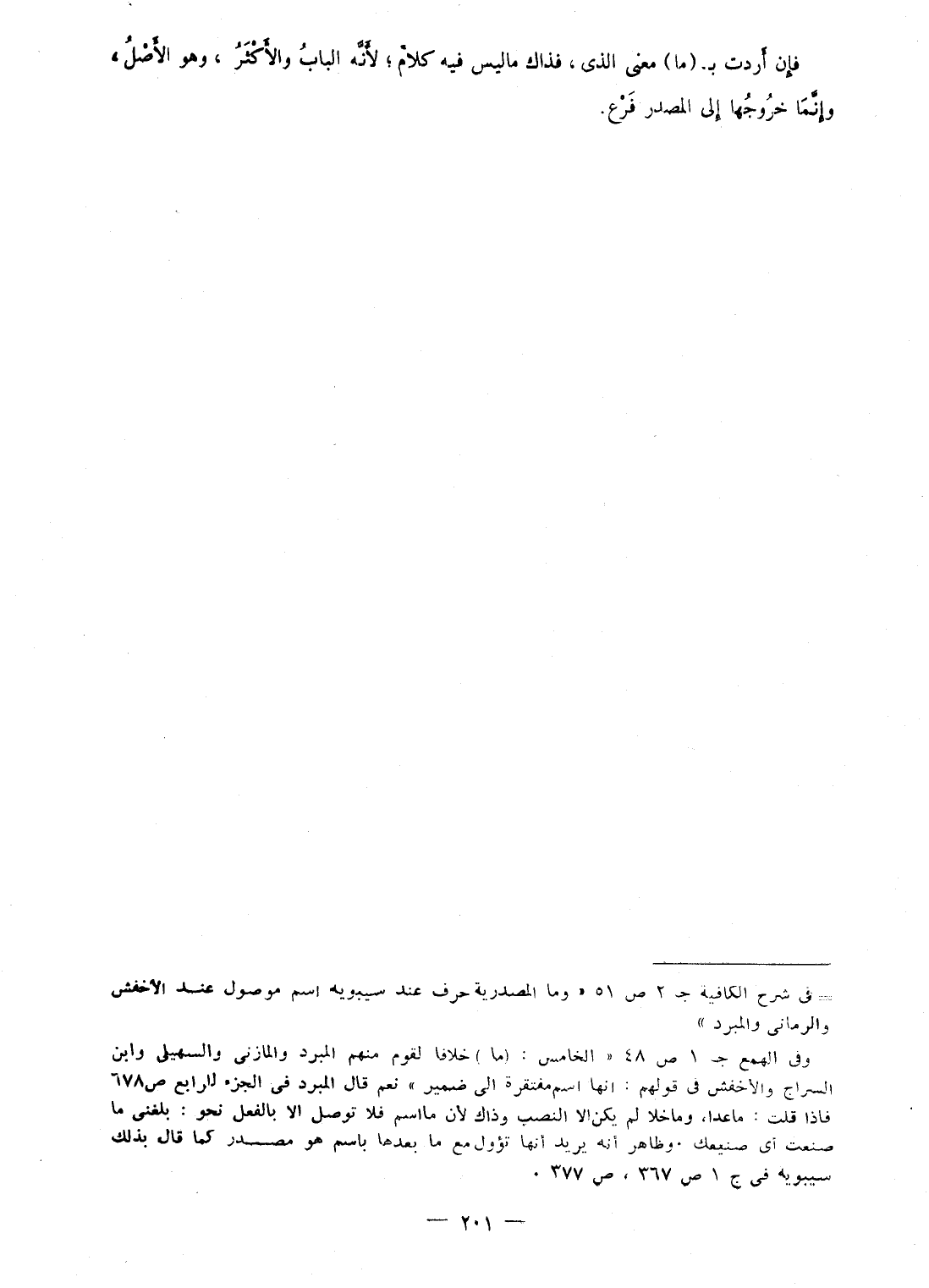 فَإِن أردْت ب (مَا) معنى الذى، فَذَاك مَا لَيْسَ فِيهِ كَلَام؛ لِأَنَّهُ الْبَاب وَالْأَكْثَر، وَهُوَ الأَصْل، وَإِنَّمَا خُرُوجهَا إِلَى الْمصدر فرع