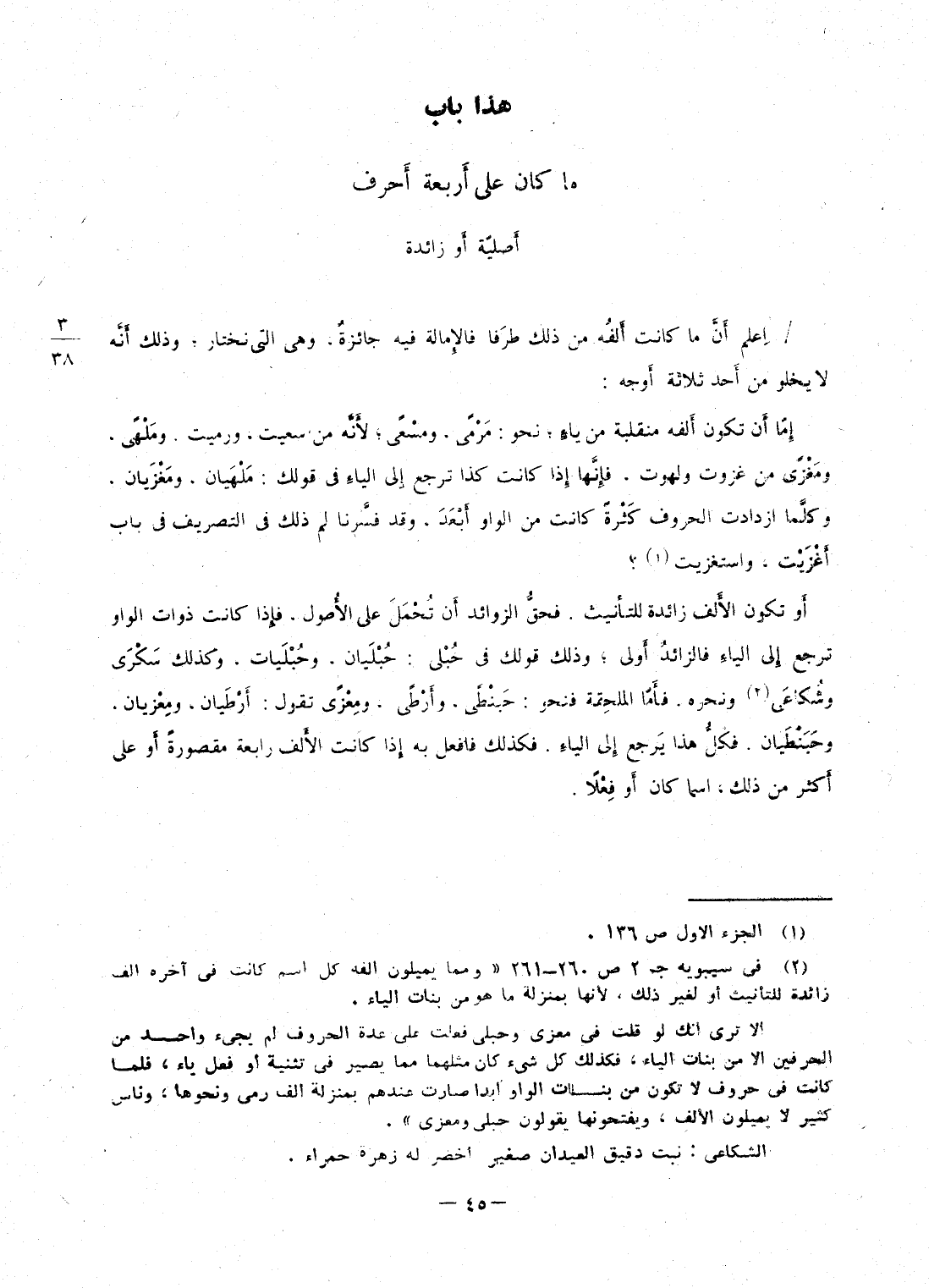 (هَذَا بَاب مَا كَانَ على أَرْبَعَة أحرف أَصْلِيَّة أَو زَائِدَة)