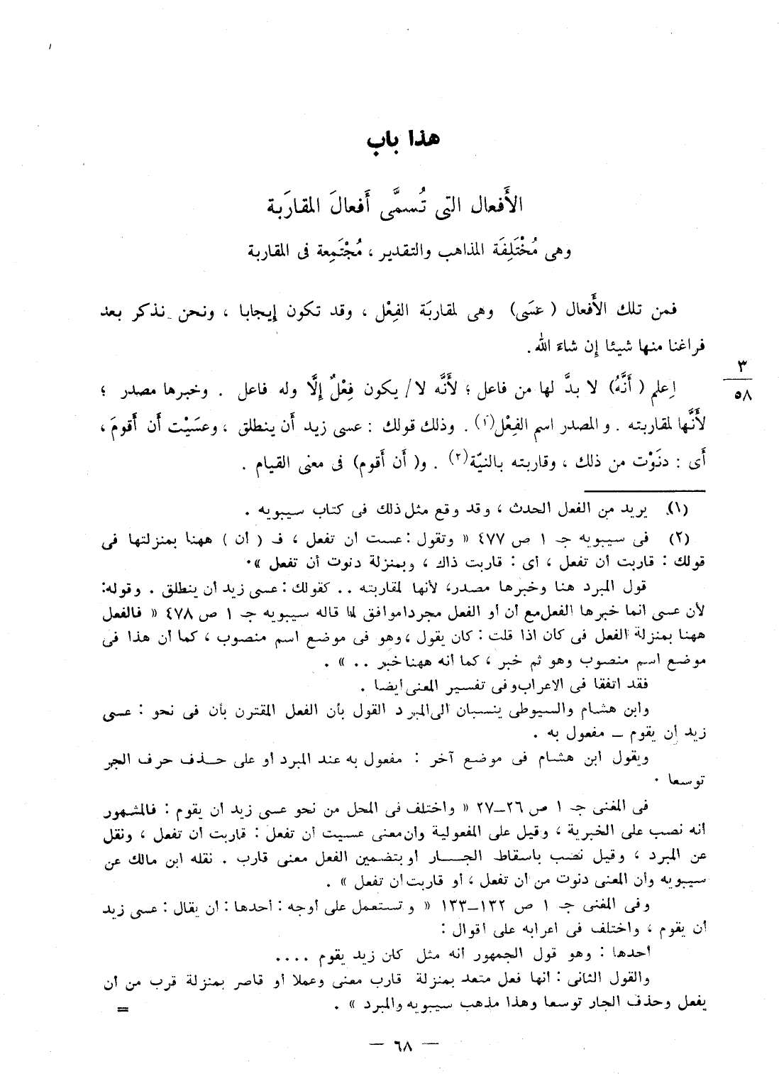 (هَذَا بَاب الْأَفْعَال الَّتِى تسمى أَفعَال المقاربة وهى مُخْتَلفَة الْمذَاهب وَالتَّقْدِير، مجتمعة فى المقاربة)
