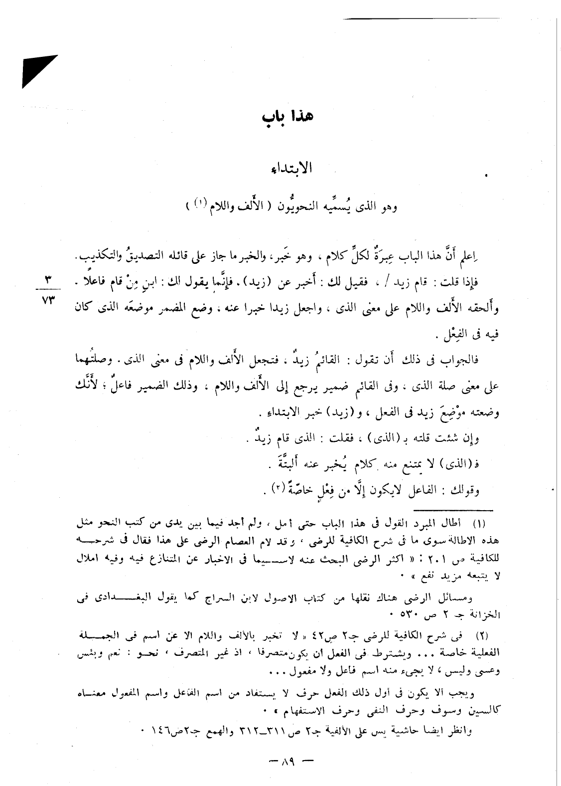 (هَذَا بَاب الِابْتِدَاء وَهُوَ الذى يُسَمِّيه النحويون (الْألف وَاللَّام))