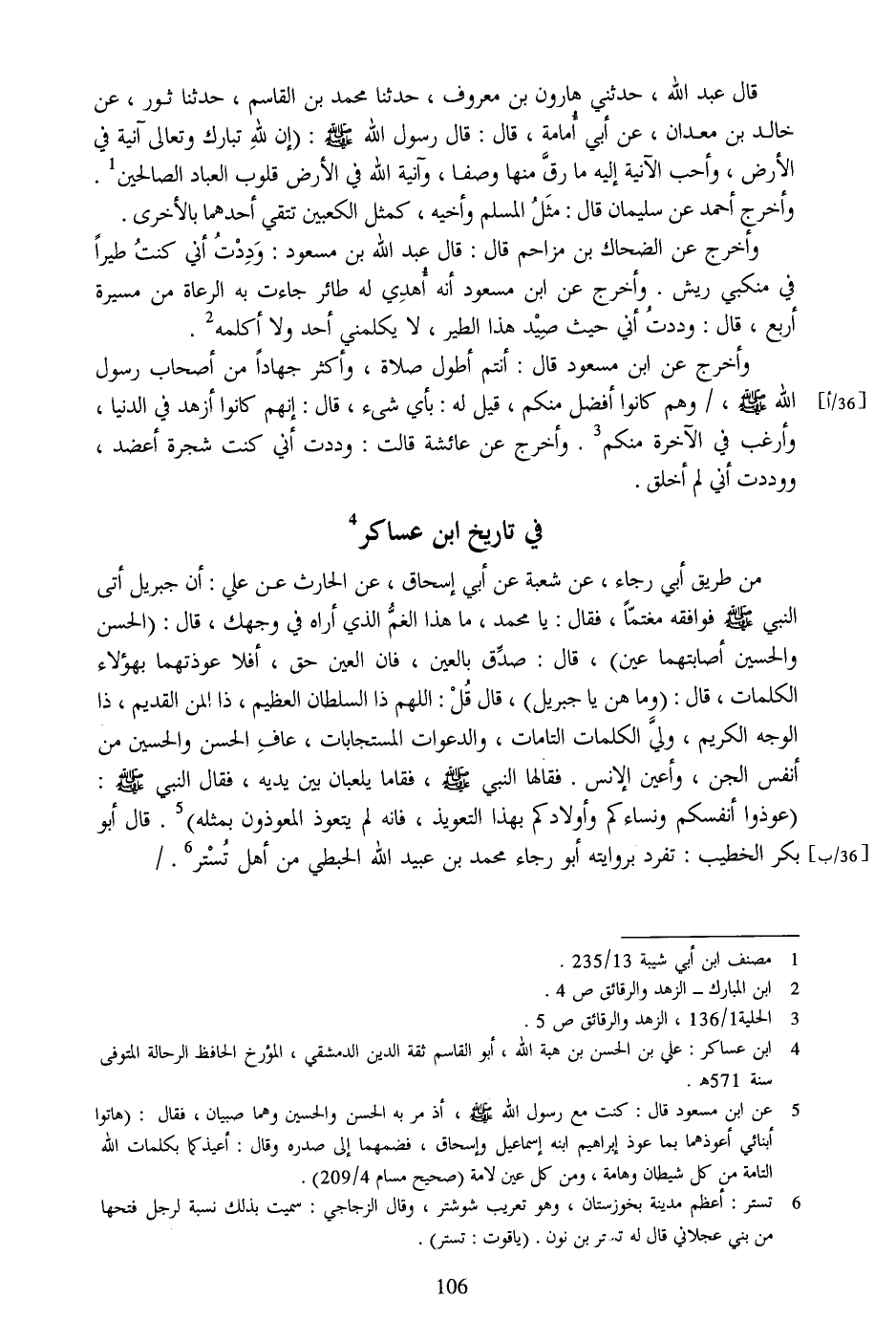 [4] ابن عساكر: علي بن الحسن بن هبة الله، أبو القاسم ثقة الدين الدمشقي، المؤرخ الحافظ الرحالة المتوفى سنة 571 هـ.
