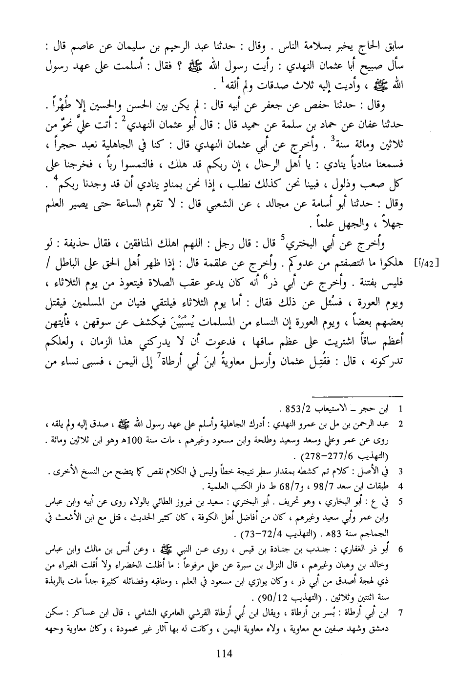 [2] عبد الرحمن بن مل بن عمرو النهدي: أدرك الجاهلية وأسلم على عهد رسول الله صلّى الله عليه وسلم، صدق إليه ولم يلقه، روى عن عمر وعلي وسعد وسعيد وطلحة وابن مسعود وغيرهم، مات سنة 100 هـ وهو ابن ثلاثين ومائة.