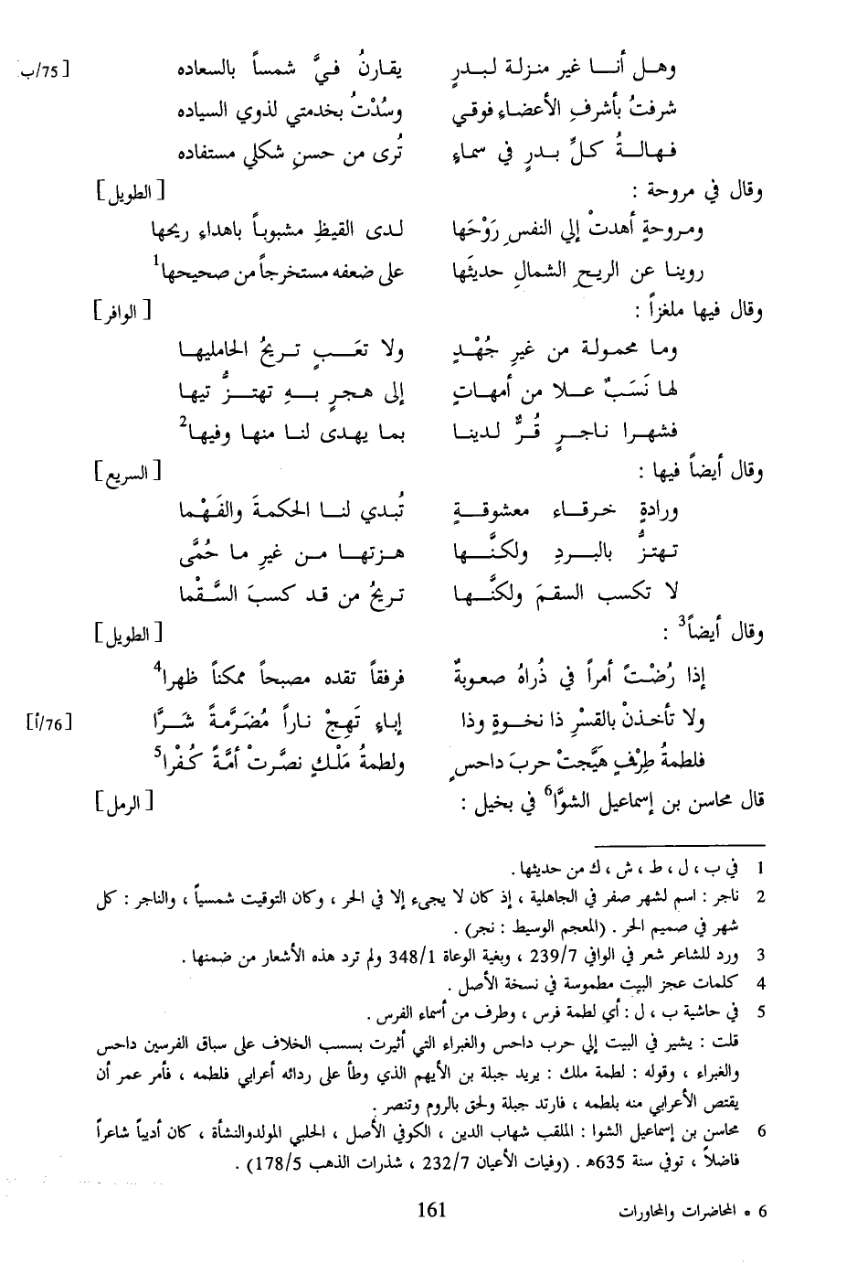 [6] محاسن بن إسماعيل الشوا: الملقب شهاب الدين، الكوفي الأصل، الحلبي المولد والنشأة، كان أديبا شاعرا فاضلا، توفي سنة 635 هـ. (وفيات الأعيان 7/232، شذرات الذهب 5/178) .