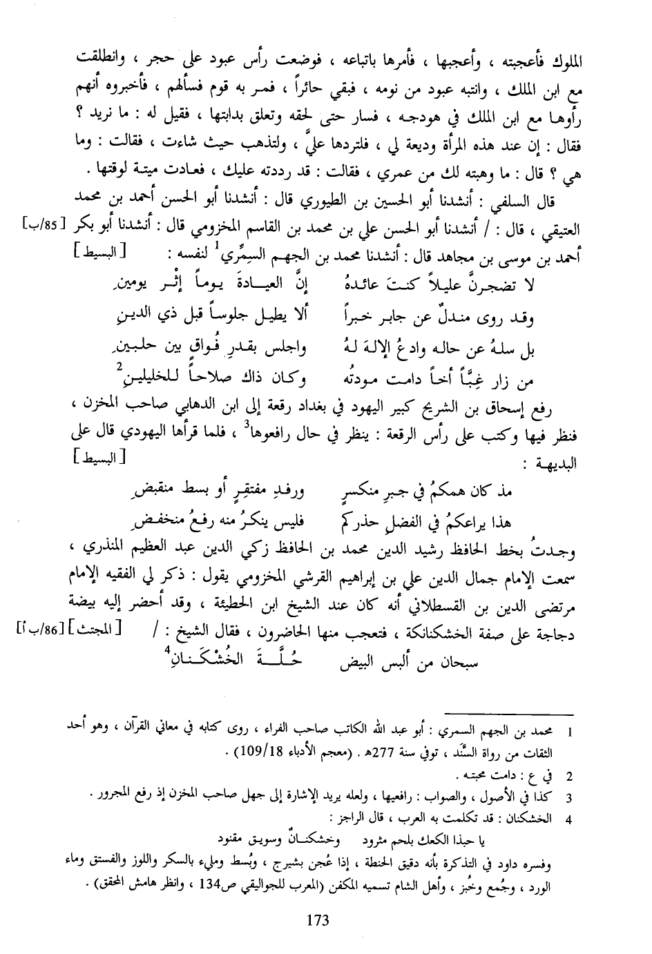 [1] محمد بن الجهم السمري: أبو عبد الله الكاتب صاحب الفراء، روى كتابه في معاني القرآن، وهو أحد الثقات من رواة السّند، توفي سنة 277 هـ. (معجم الأدباء 18/109) .