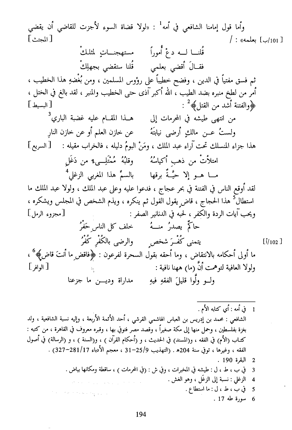 وأما قول إمامنا الشافعي في أمه [1] : «لولا قضاة السوء لأجزت للقاضي أن يقضي بعلمه» :/ [المجتث]