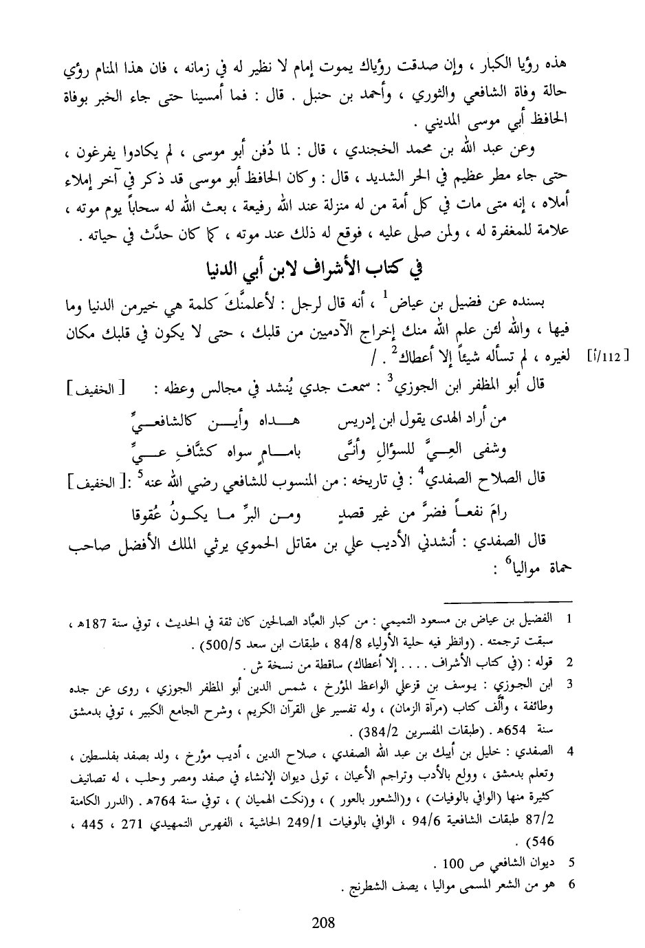 قال الصلاح الصفدي [4] : في تاريخه: من المنسوب للشافعي رضي الله عنه [5] : [الخفيف]