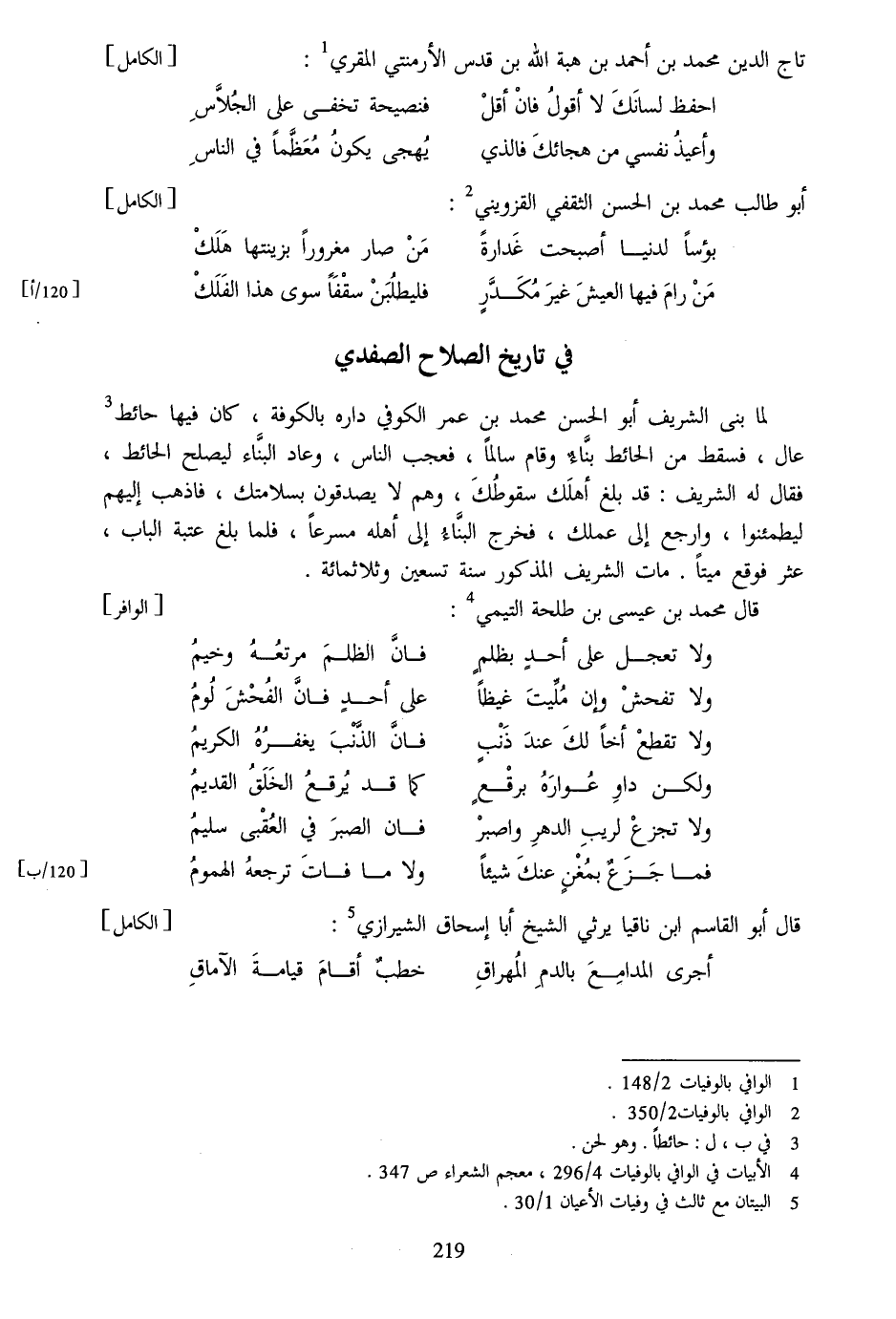 [4] الأبيات في الوافي بالوفيات 4/296، معجم الشعراء ص 347.