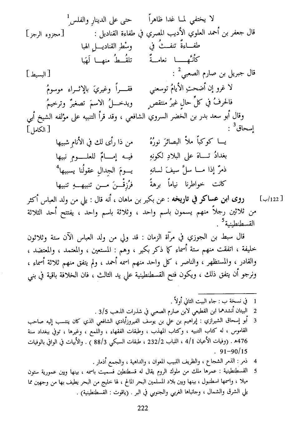 قال جعفر بن أحمد العلوي الأديب المصري في طفاءة القناديل: [مجزوء الرجز]