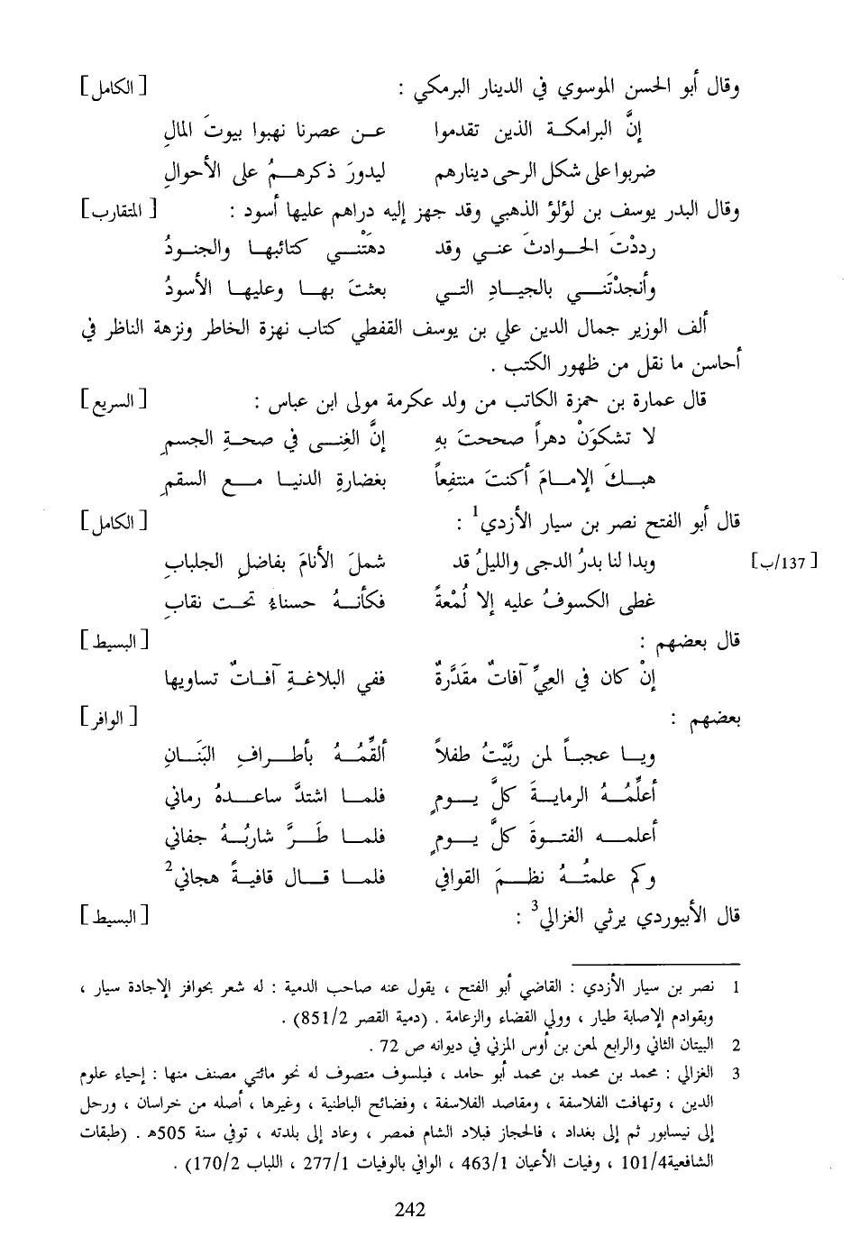 قال أبو الفتح نصر بن سيار الأزدي [1] : [الكامل]